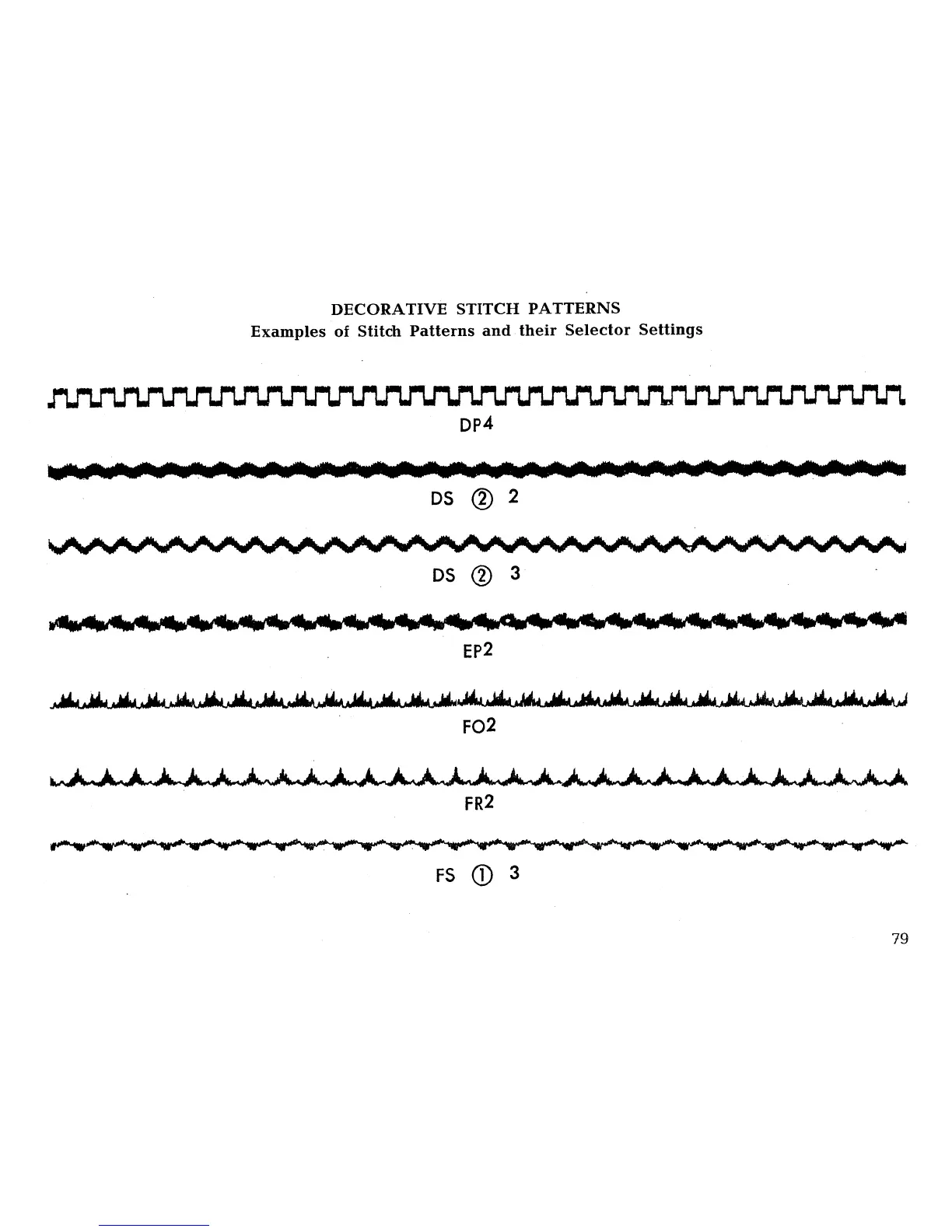 Singer 431 CONVERTIBLE - Decorative Stitch Patterns; Examples of Stitch Patterns and Their Selector Settings