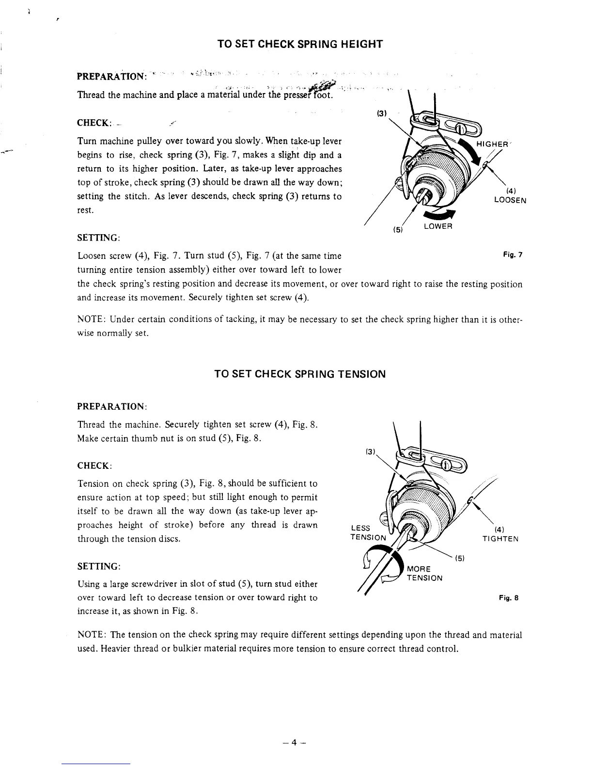 Singer 431D200A - Check Spring Height Adjustment; Check Spring Tension Adjustment