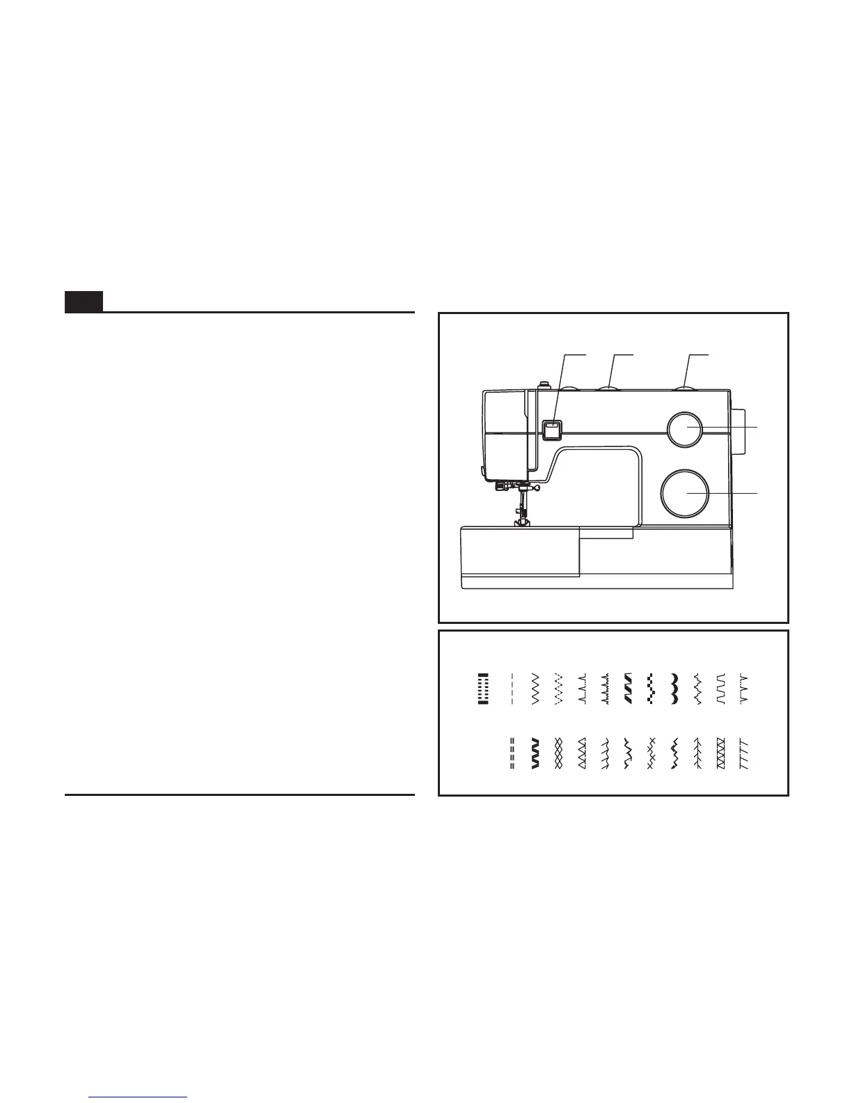 The diagram on this page display the stitch patterns available