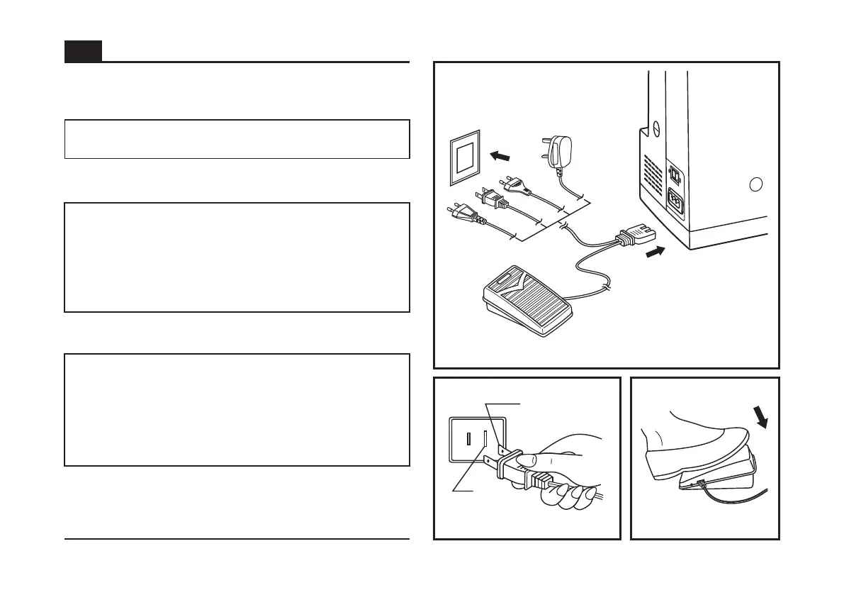 The foot control pedal regulates the sewing speed. (3)