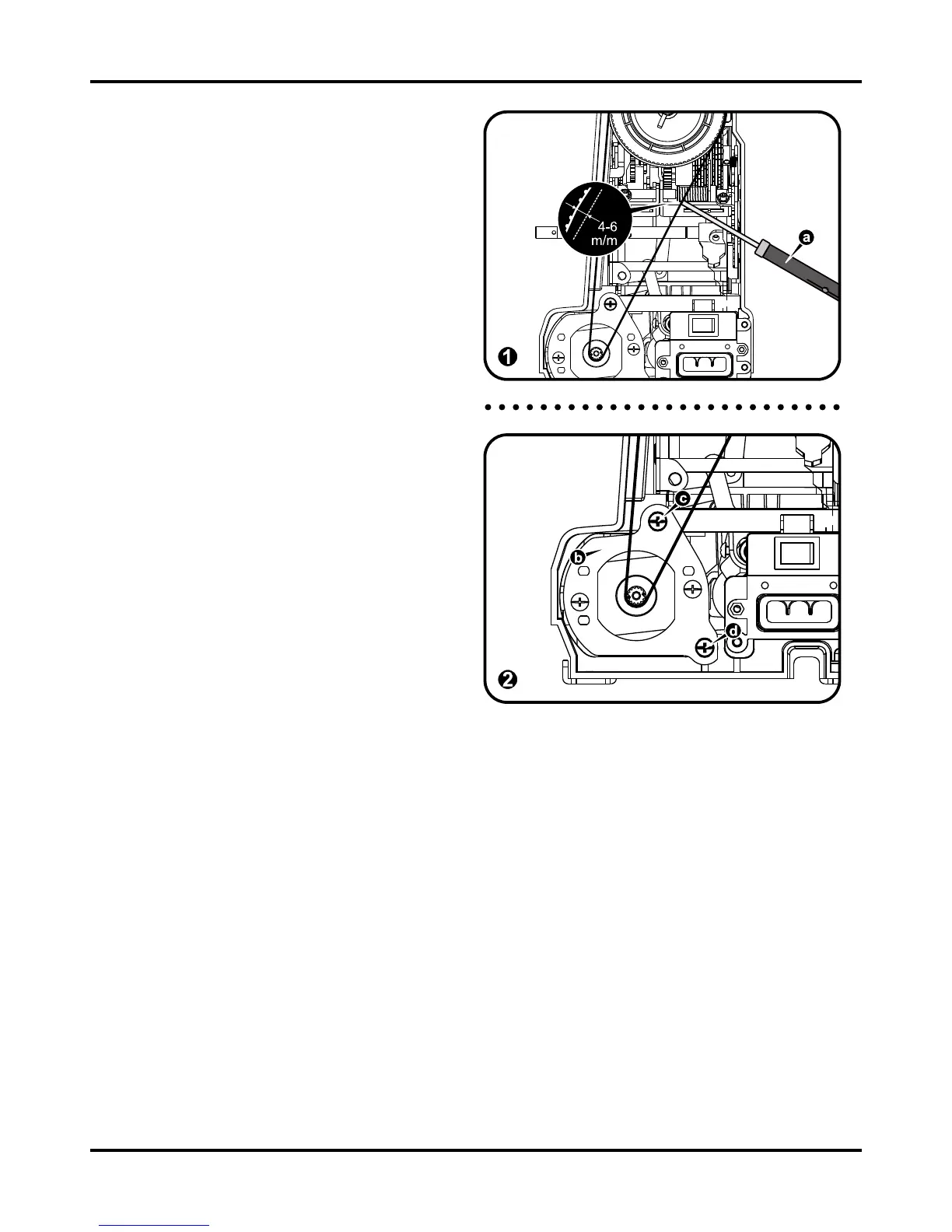Loosen the screws (c, d) of adjusting plate