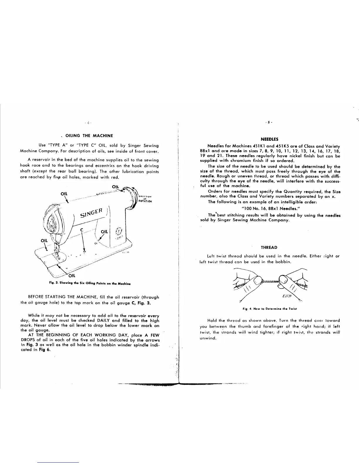 Singer 451K1 - Machine Oiling Procedure; Oil Reservoir and Points