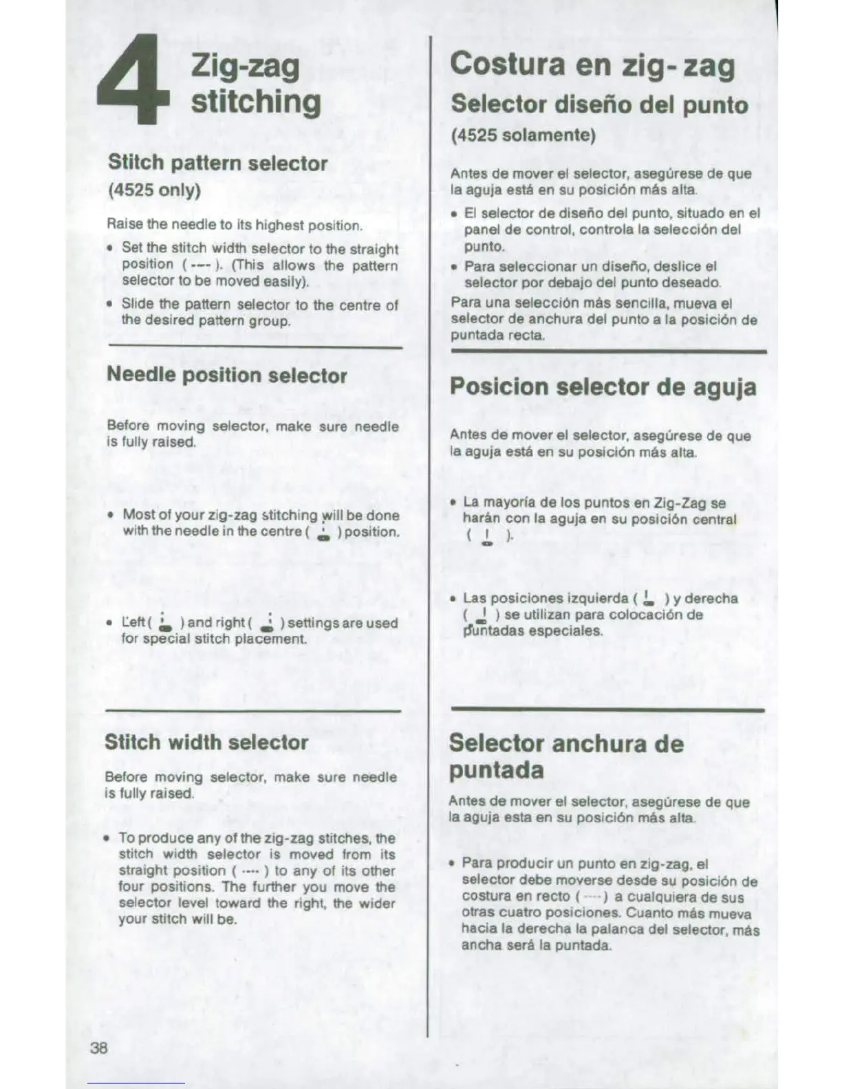 Singer 4522 - Zig-zag stitching; Stitch Pattern and Width Selection