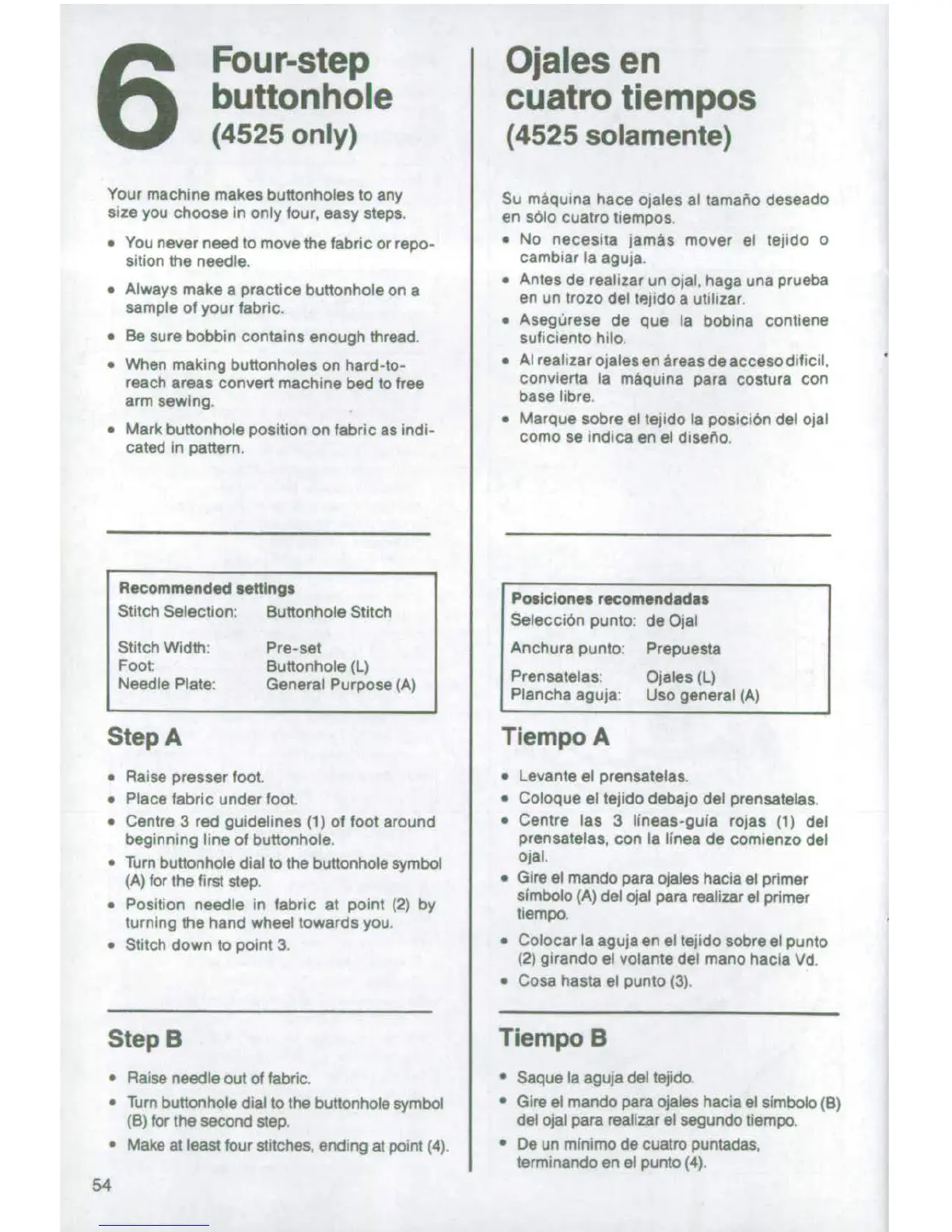 Singer 4522 - Four-step buttonhole (4525 only); Buttonhole Steps and Balancing
