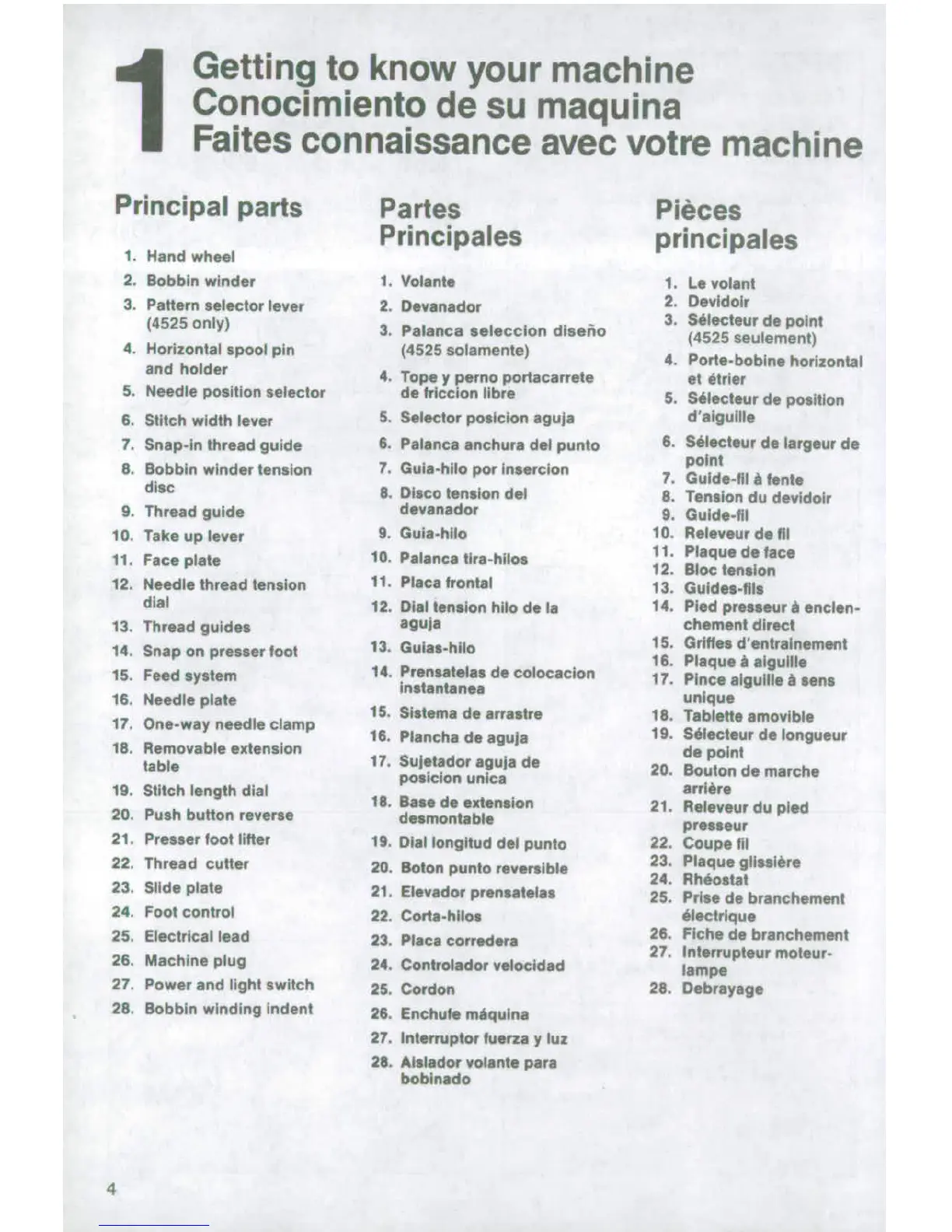 Singer 4522 - Getting to know your machine; Principal Parts Identification