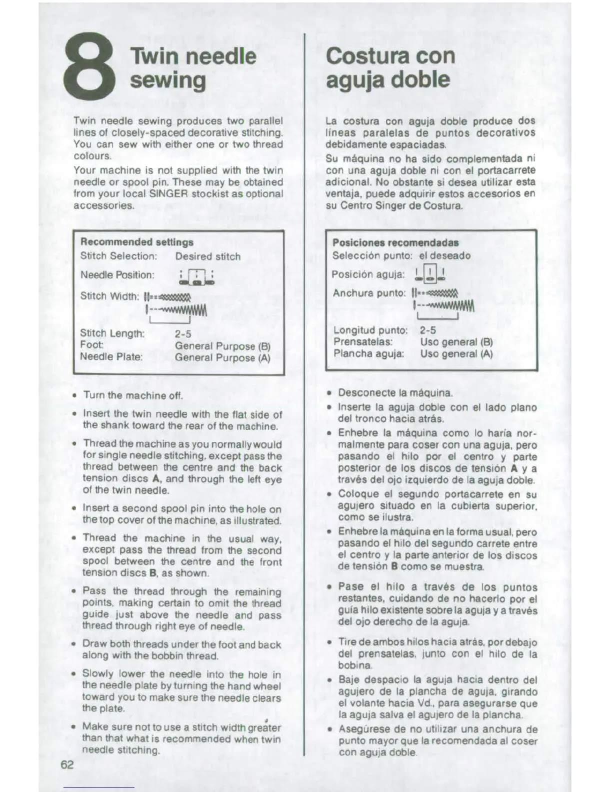 Singer 4522 - Twin needle sewing; Twin Needle Operation
