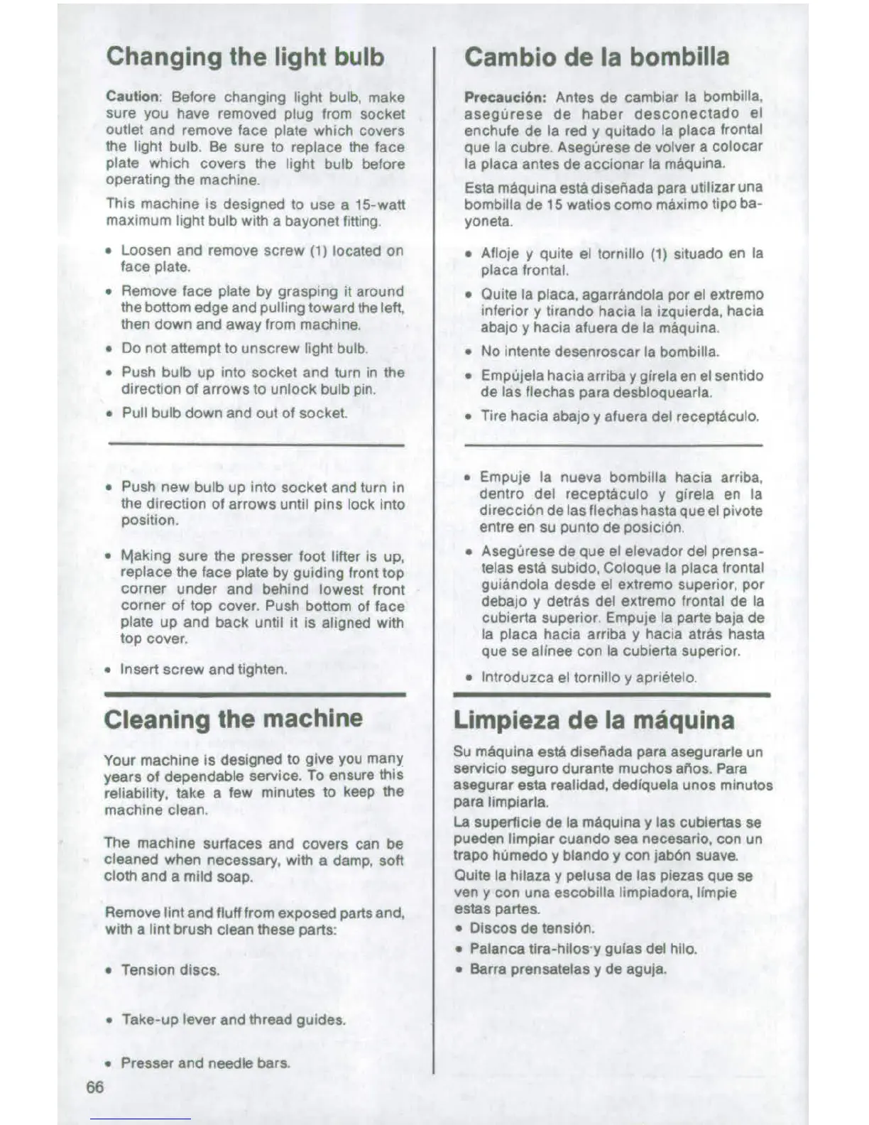 Singer 4522 - Light Bulb and Cleaning
