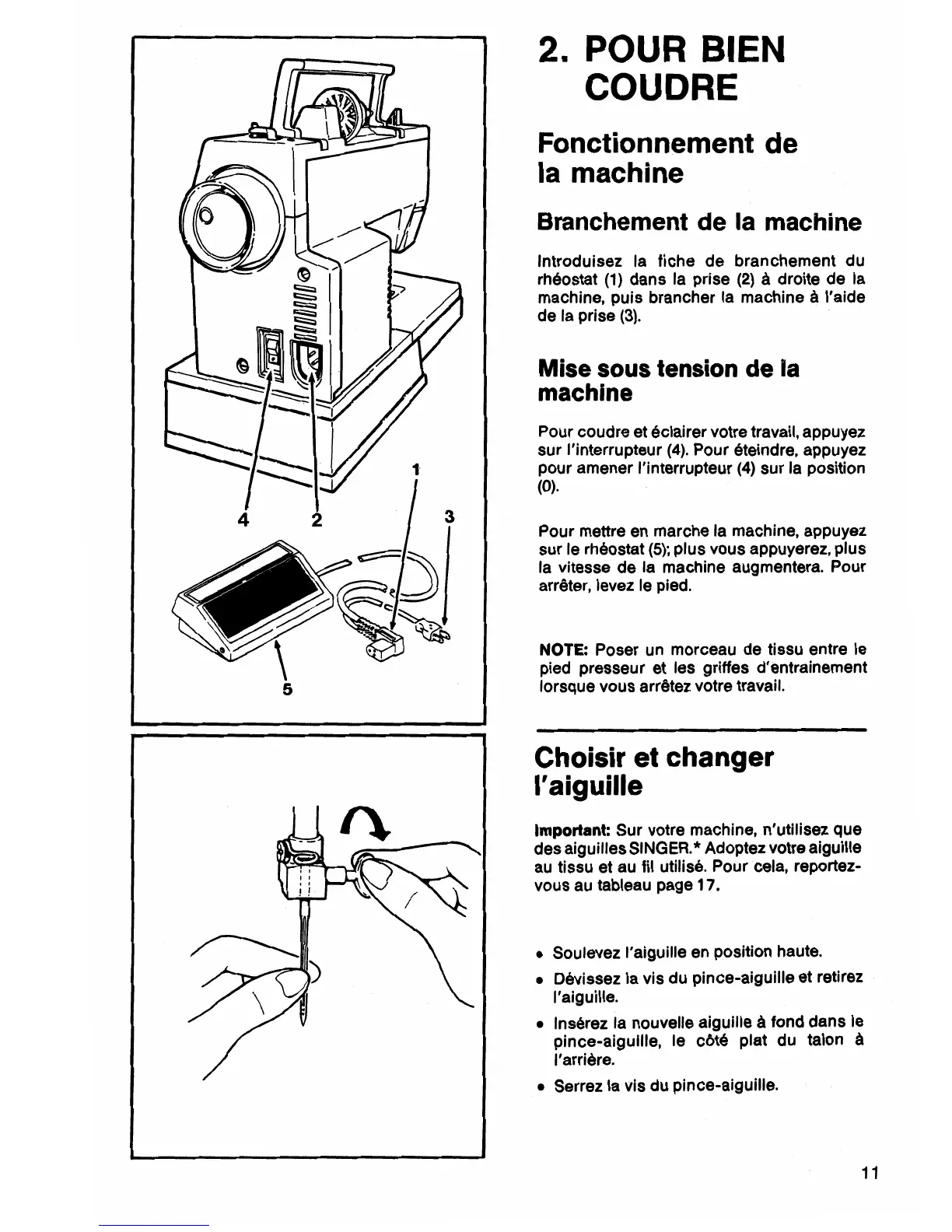 Singer 4538 - Fonctionnement de la Machine; Choisir Et Changer Laiguillle