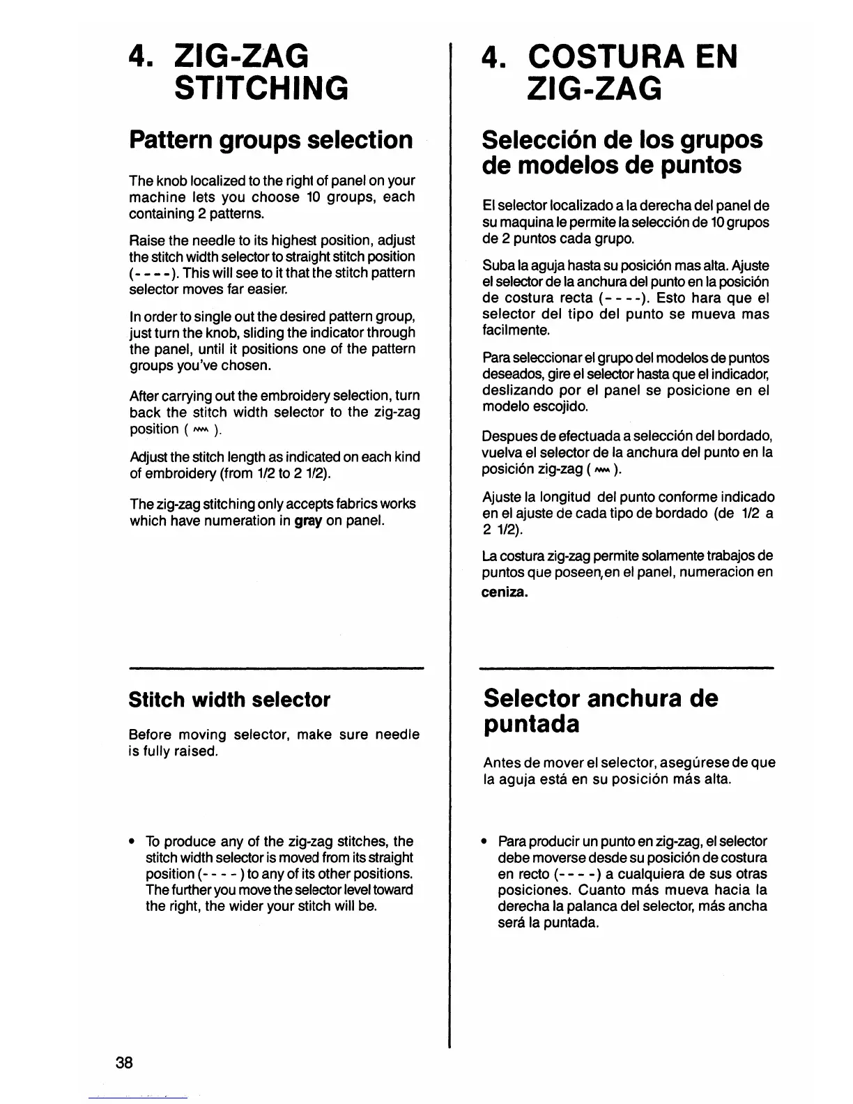 Singer 4538 - 4. Zig-Zag Stitching; Pattern Group Selection; Stitch Width and Length Adjustment