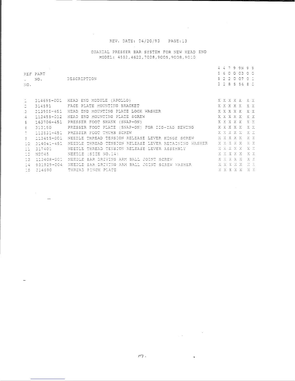 Singer 4552 - Singer Sewing Machine Coaxial Presser Bar System Parts