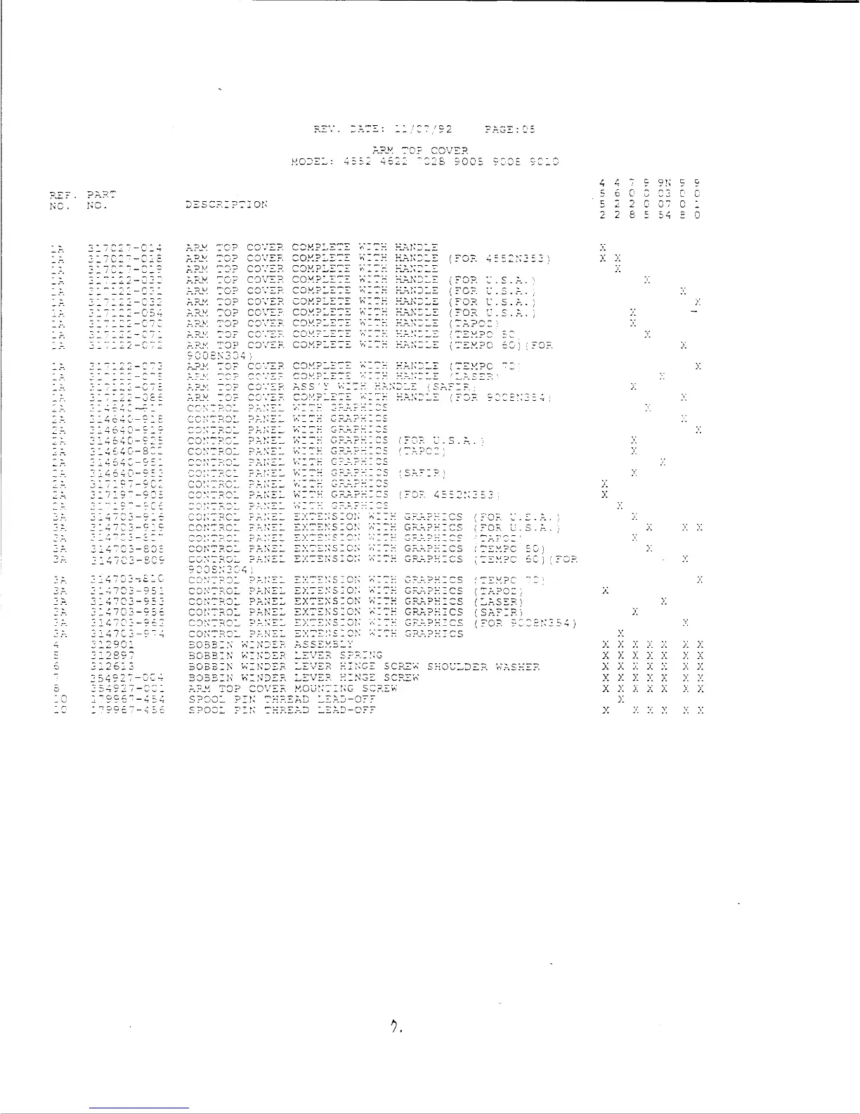 Singer 4552 - Singer Sewing Machine Arm Top Cover Assembly Parts