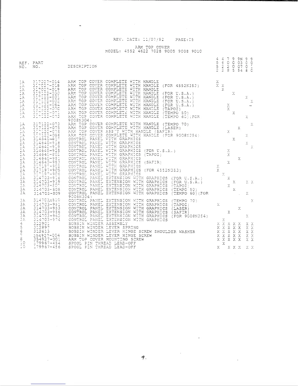 Singer 4552 - Arm Top Cover