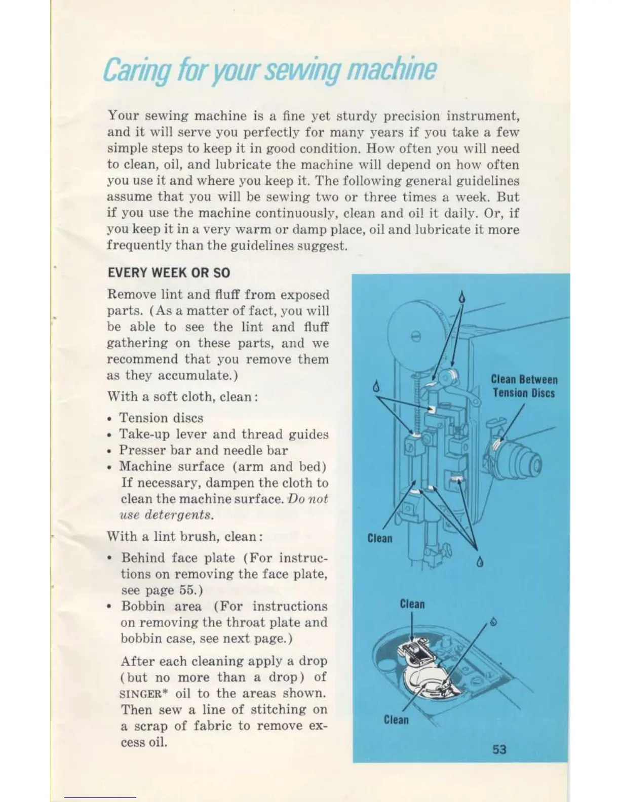 Singer 457 - Caring for Your Sewing Machine; Every Week or so