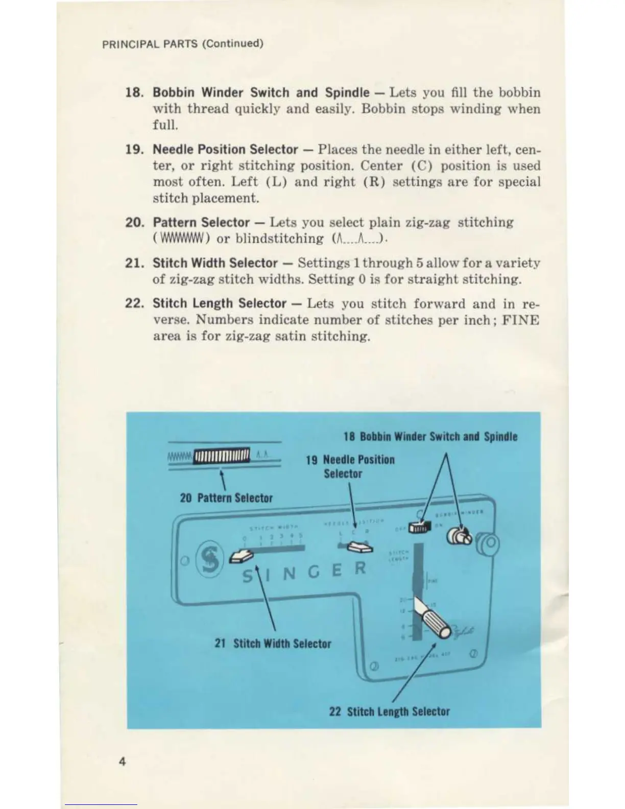 Singer 457 - Stitch Width Selector; Stitch Length Selector
