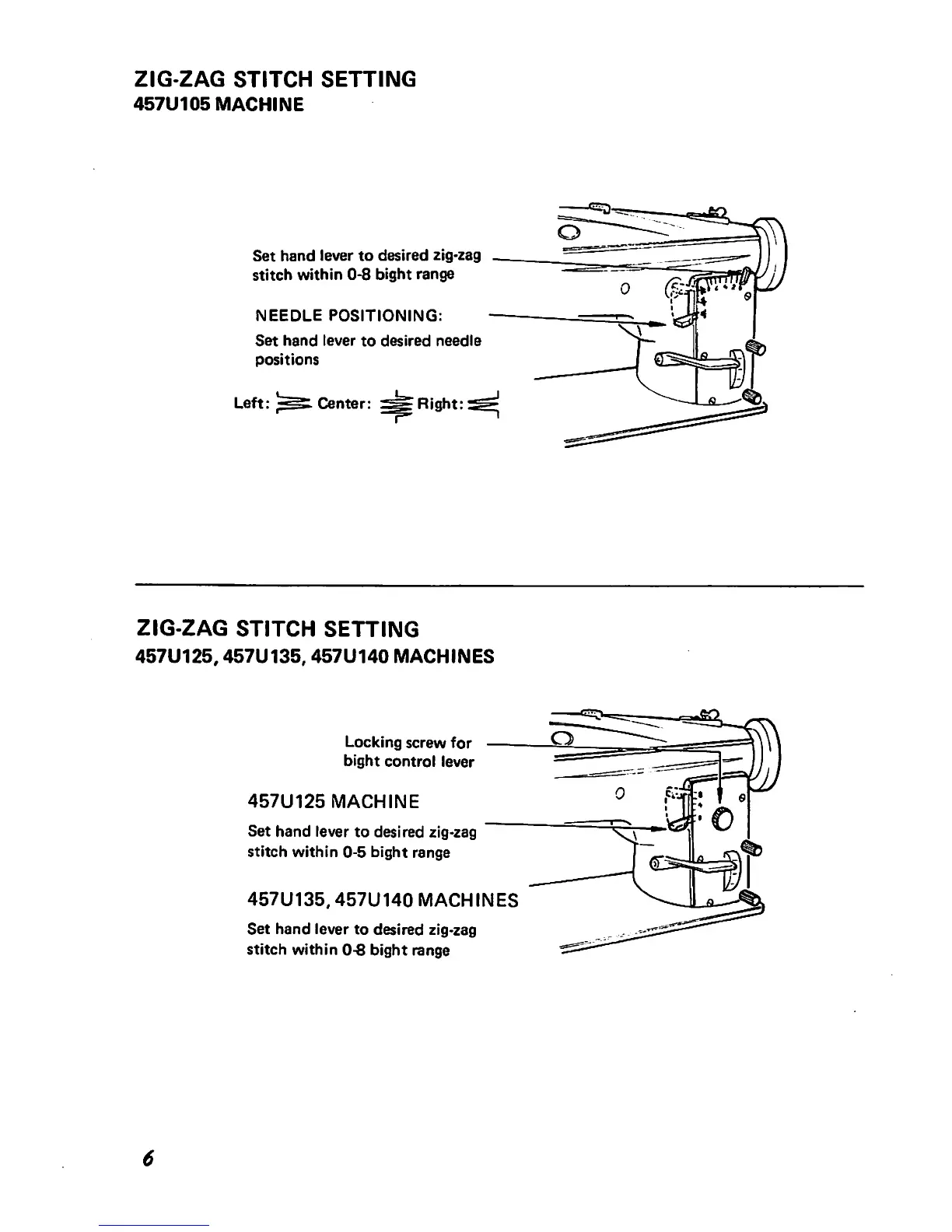 Singer 457u105 - ZIG-ZAG STITCH SETTINGS (457 U105); 457 U105 Zig-Zag Range; 457 U105 Needle Positioning; ZIG-ZAG STITCH SETTINGS (457 U125-140)