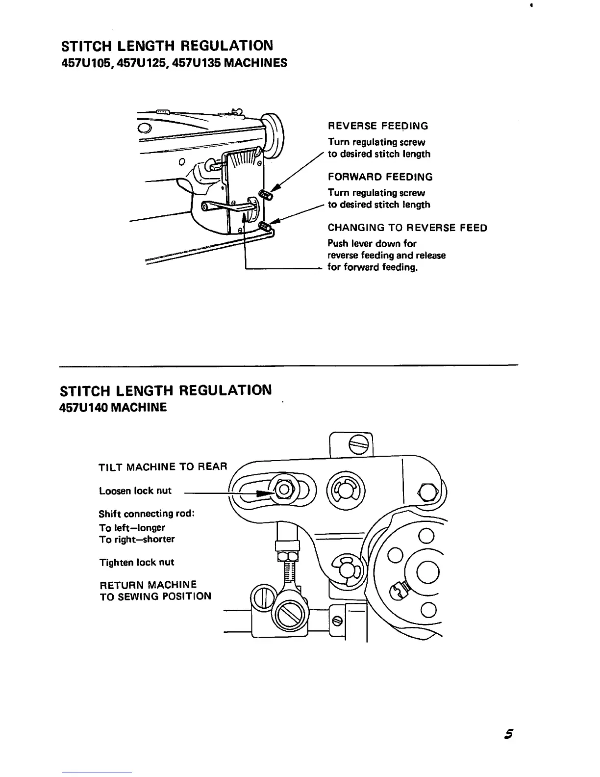 Singer 457U135 - STITCH LENGTH REGULATION (457 U105, 457 U125, 457 U135 MACHINES); Reverse Feed Stitch Length; Forward Feed Stitch Length; Switching Between Feeds