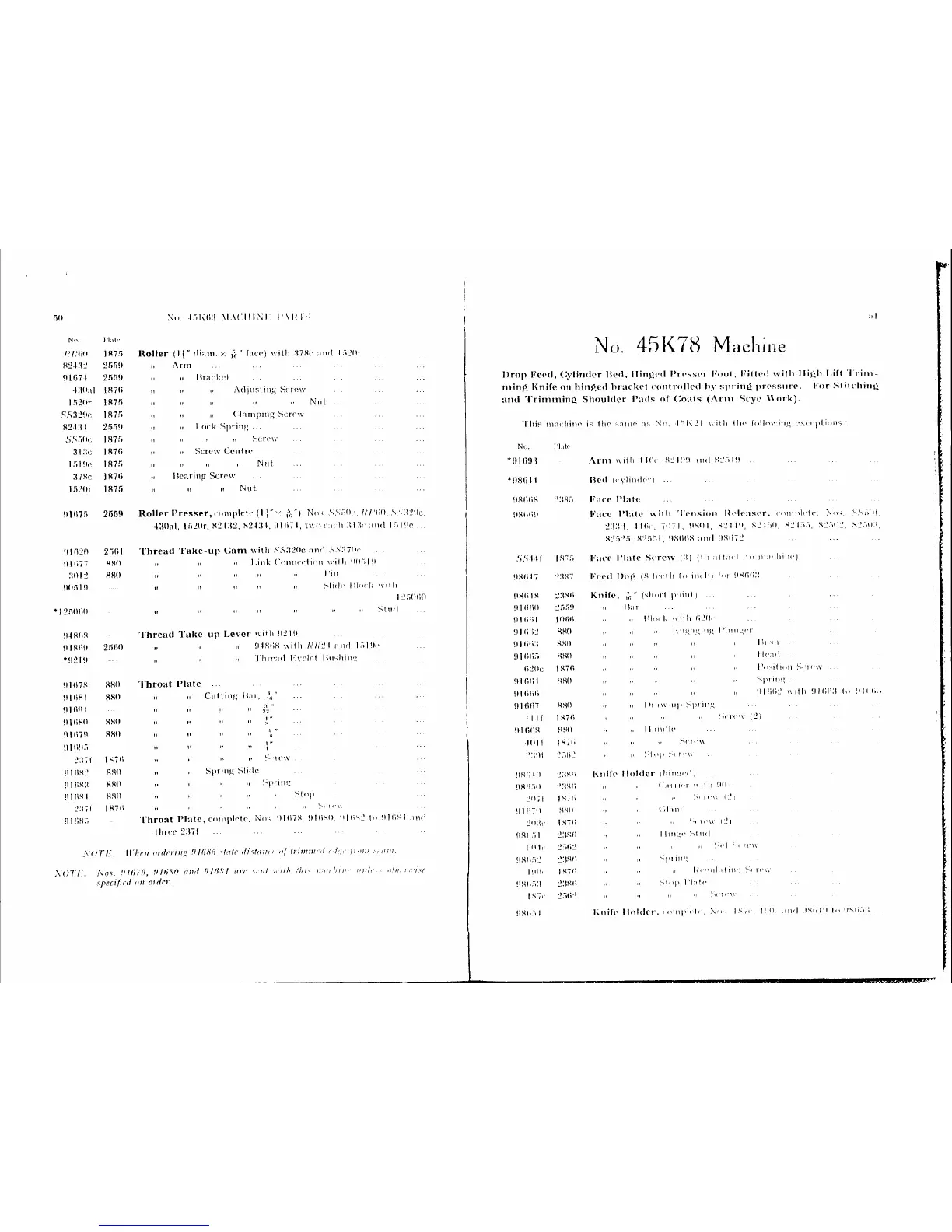 Singer 45K21 - Parts Complete for No. 45 K78 Machine