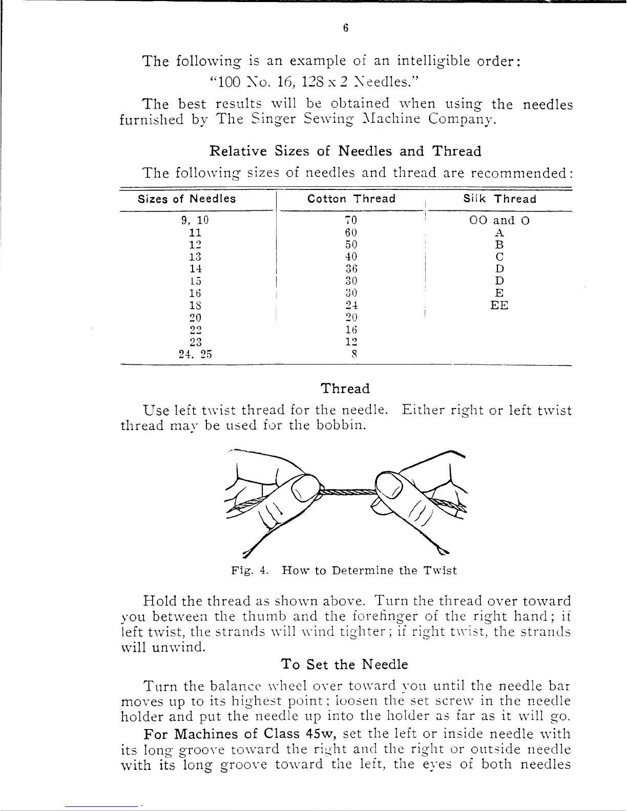 Singer 45W - Needle and Thread Setup; Setting the Sewing Machine Needle