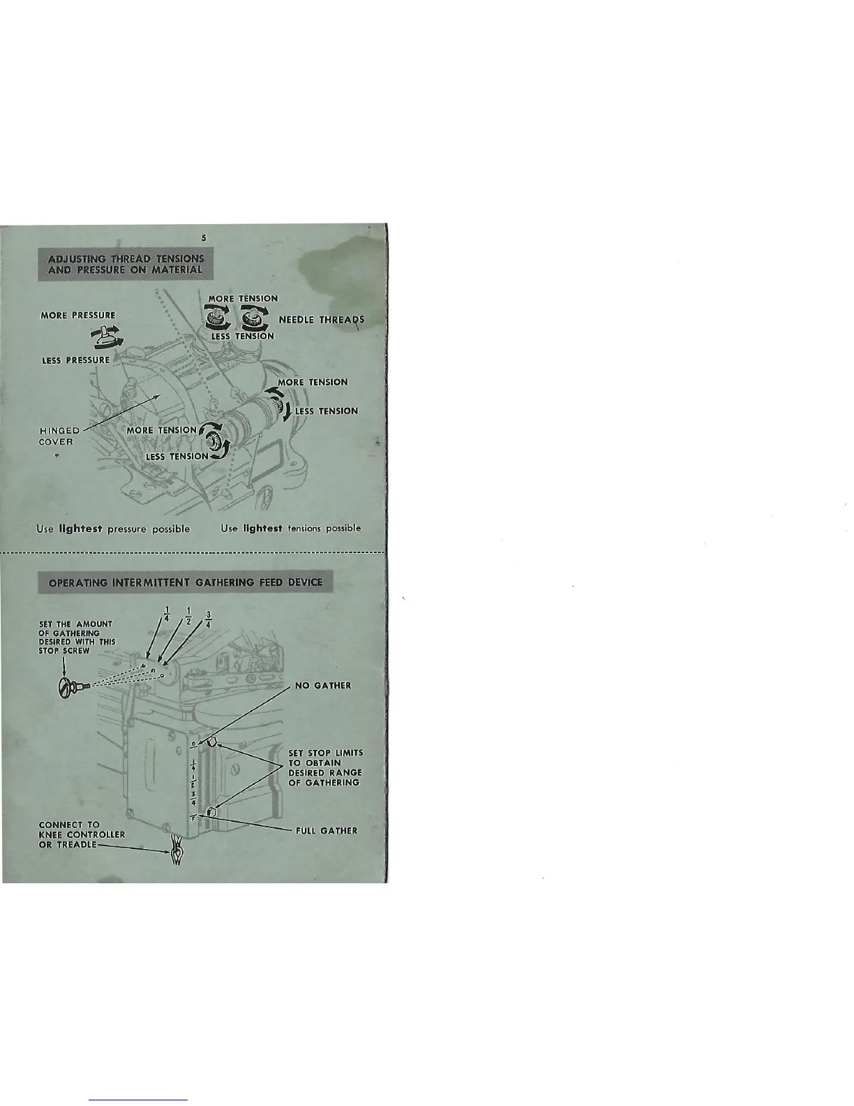 Singer 460 series - Operational Adjustments; Adjusting Thread Tensions; Operating Gathering Feed Device
