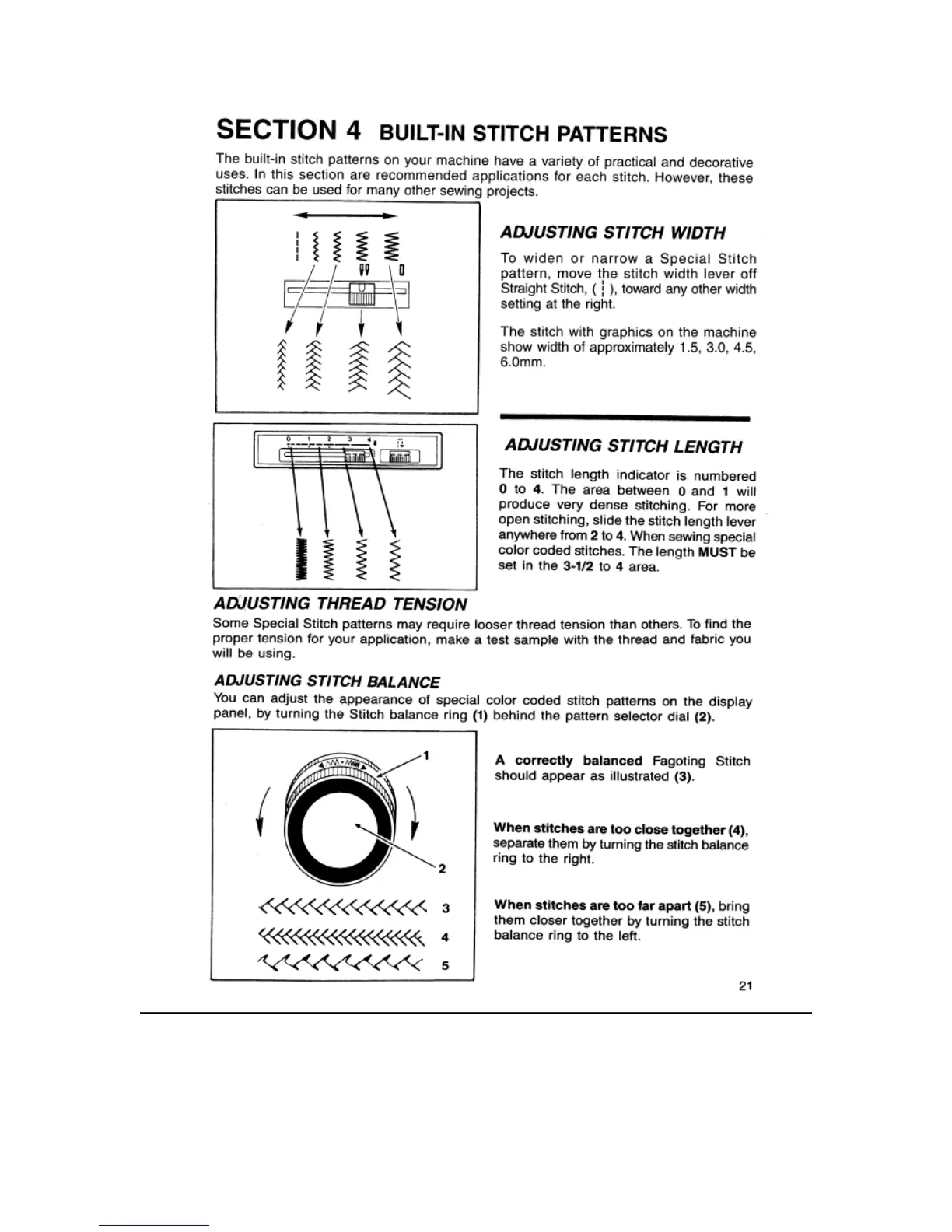 Singer 4610 - SECTION 4 BUILT-IN STITCH PATTERNS; Adjusting Stitch Width; Adjusting Stitch Length; Adjusting Stitch Balance