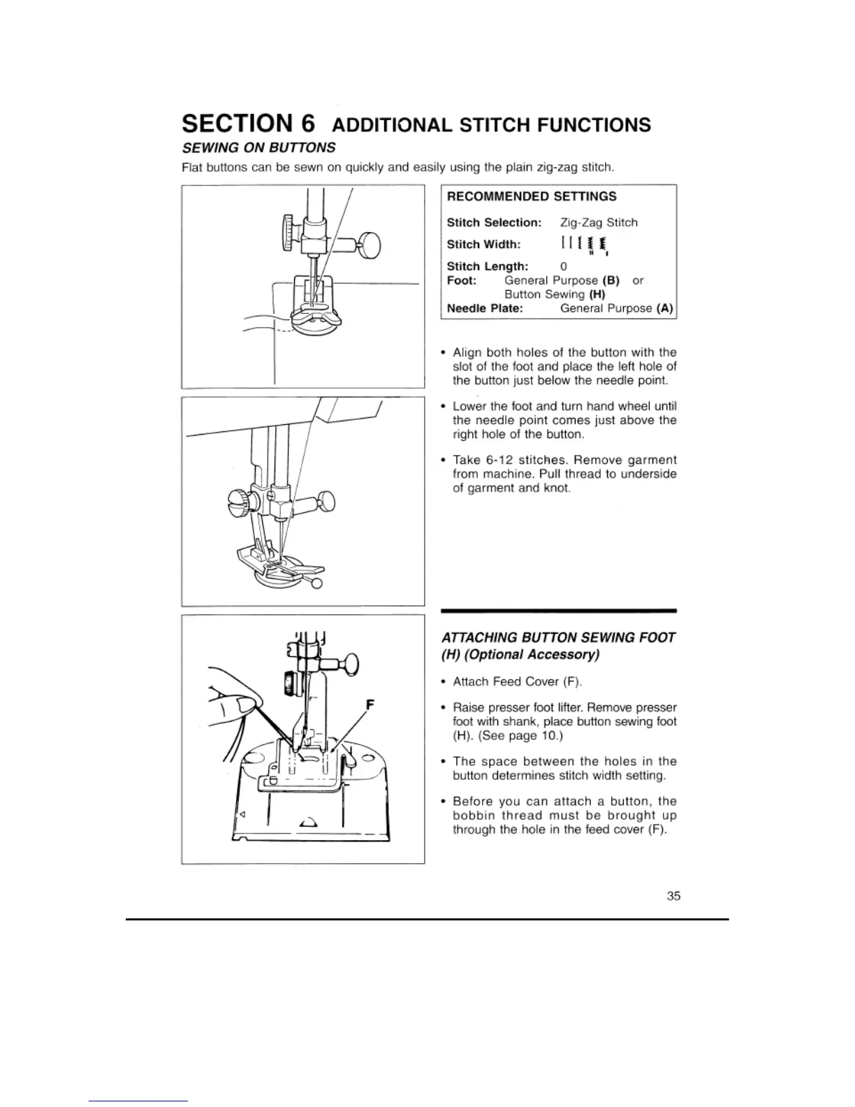 Singer 4610 - SECTION 6 ADDITIONAL STITCH FUNCTIONS; Sewing on Buttons; Attaching Button Sewing Foot