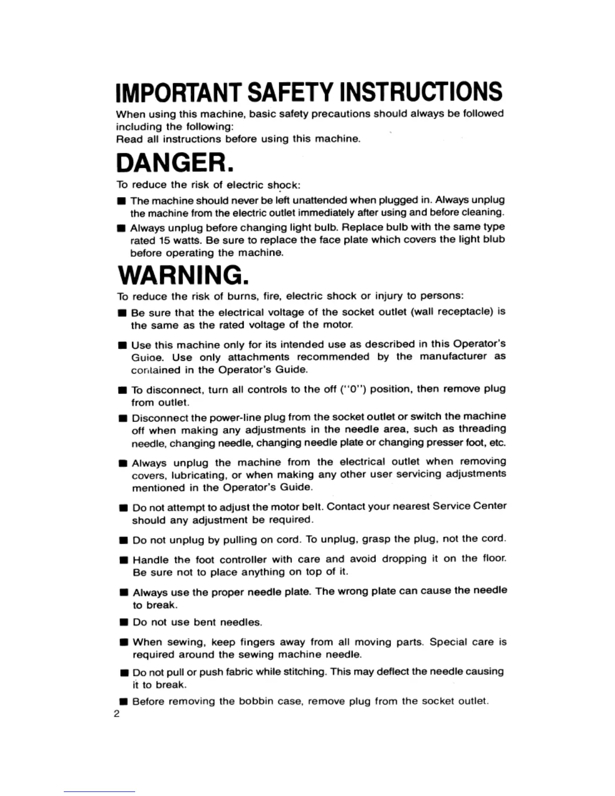 Singer 4610 - IMPORTANT SAFETY INSTRUCTIONS