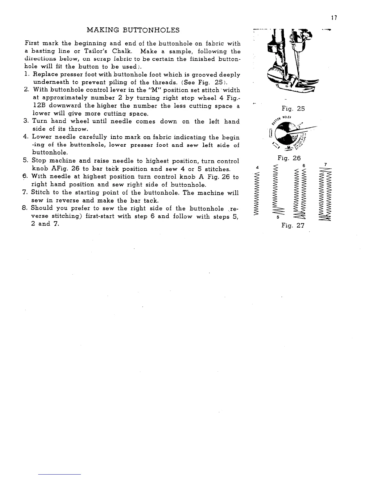 Singer 465 - Making Buttonholes