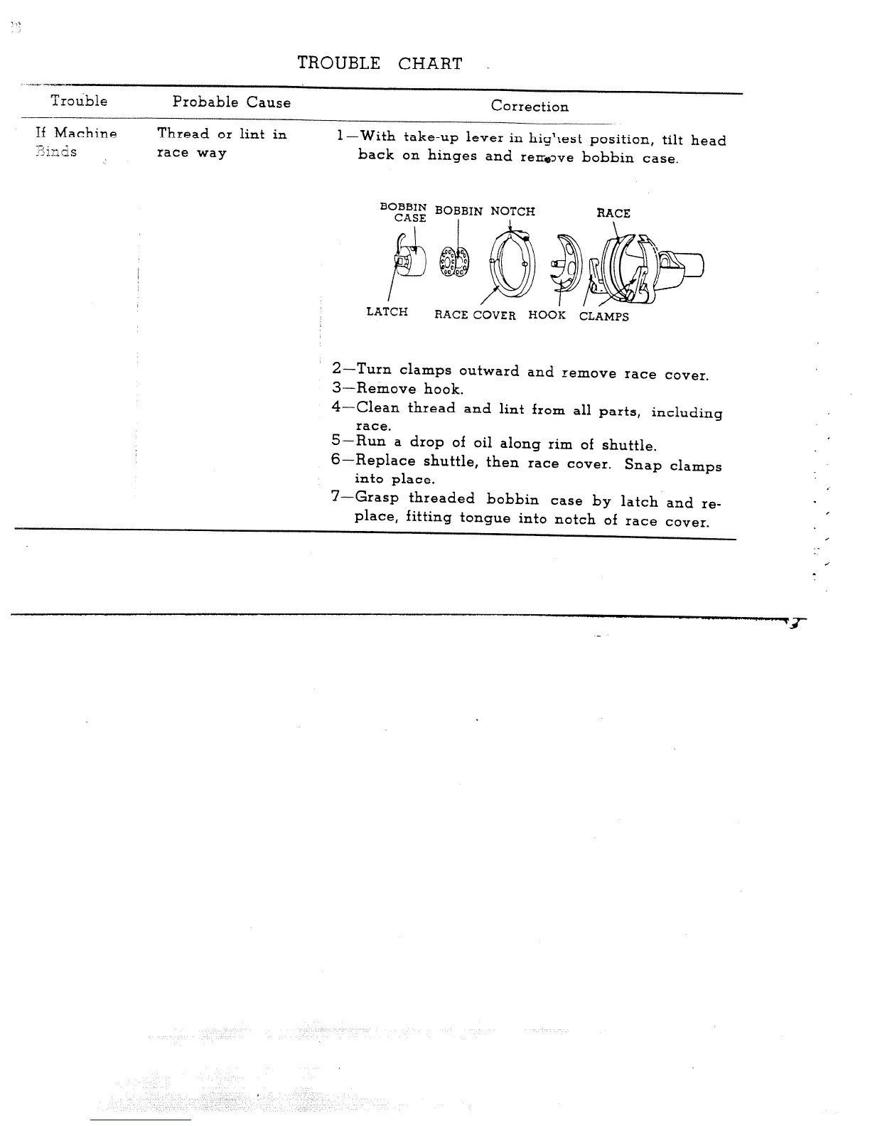 Singer 465 - Trouble Chart; Machine Binds