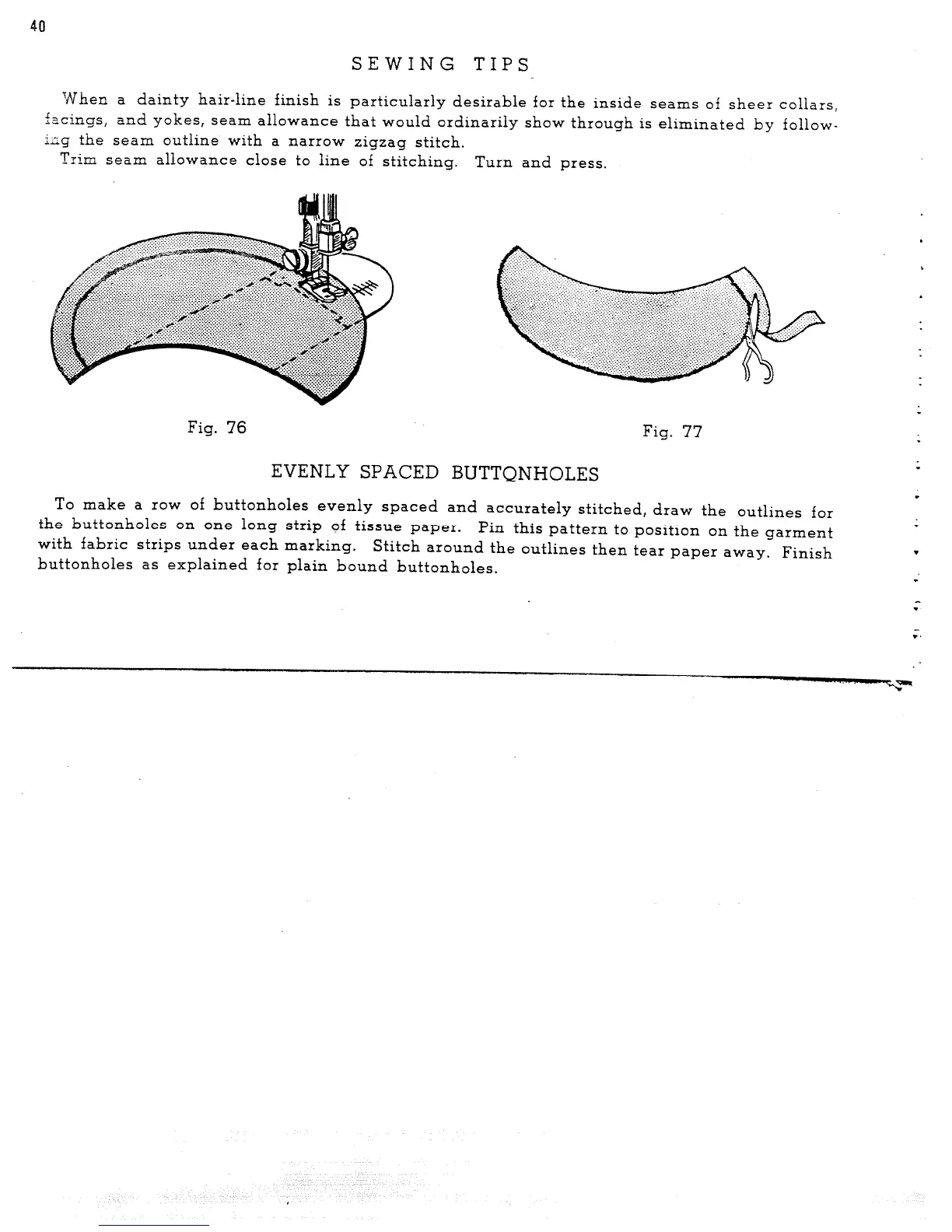 Singer 465 - Sewing Tips; Evenly Spaced Buttonholes