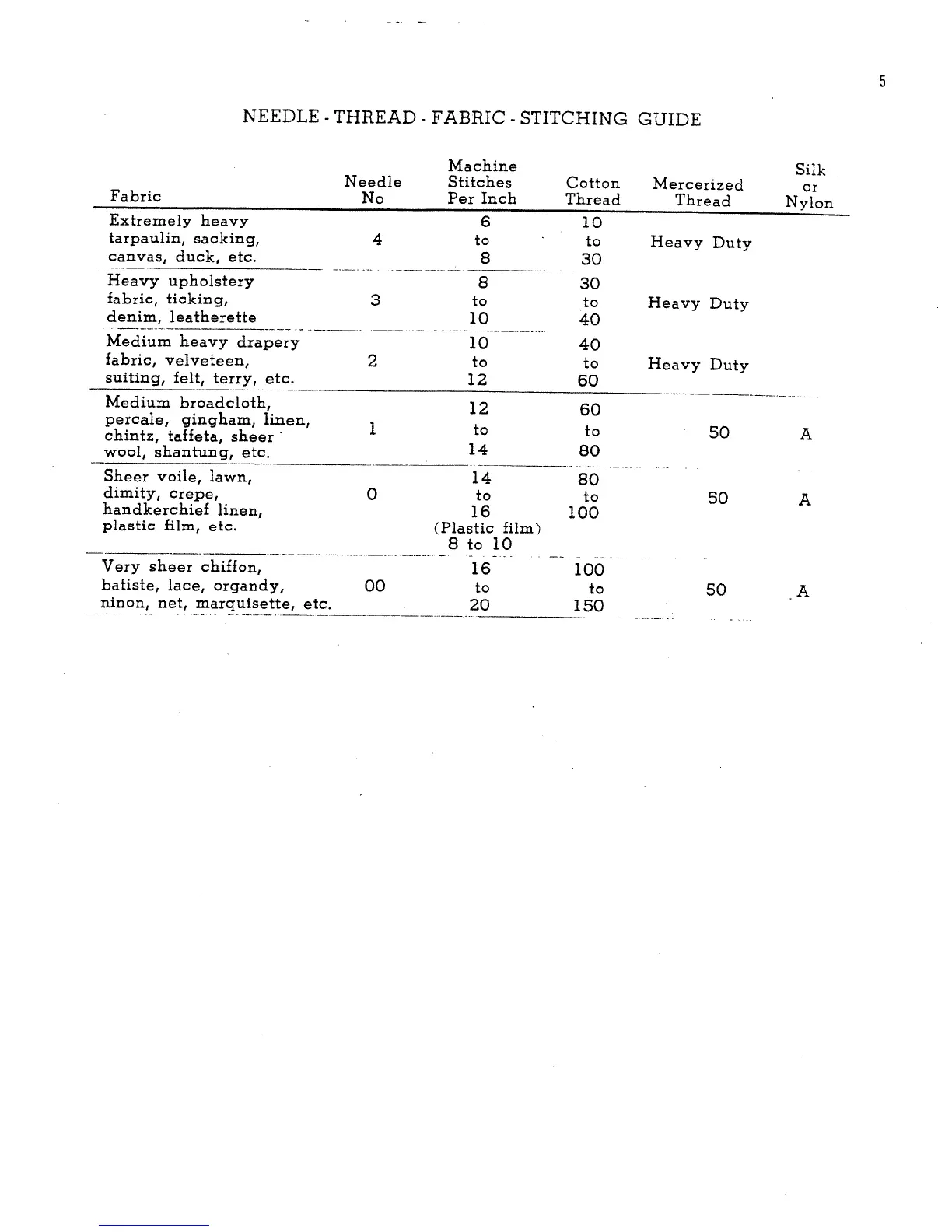 Singer 465 - Needle, Thread, Fabric, Stitching Guide