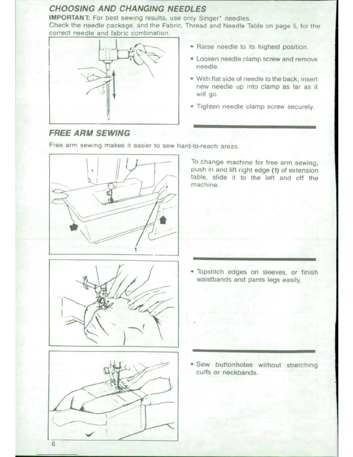 Singer 4671 - Needle Selection and Replacement; Free Arm Sewing Conversion