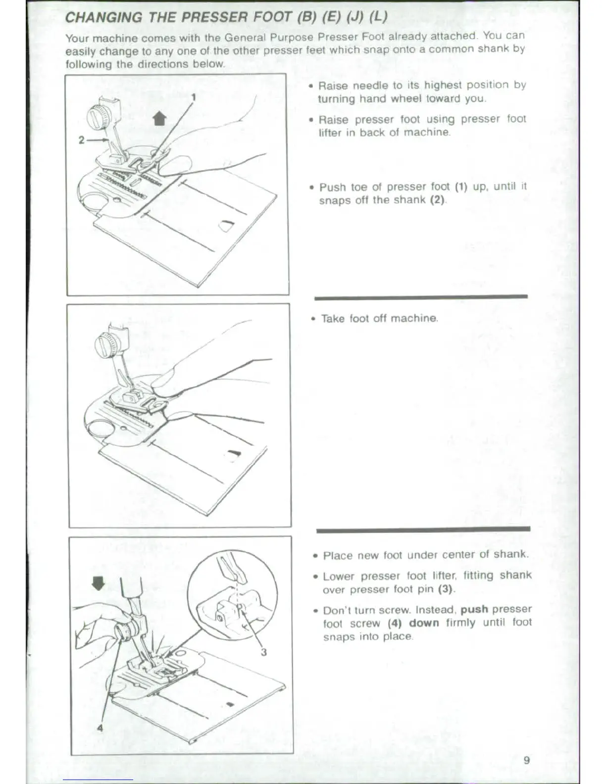 Singer 4671 - Changing the Presser Foot; Removing the Current Presser Foot; Attaching a New Presser Foot