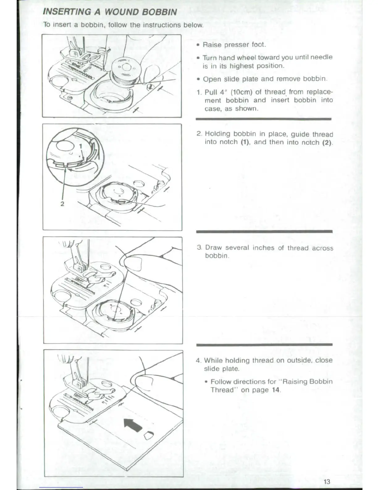 Singer 4671 - Inserting the Bobbin; Preparing to Insert Bobbin; Placing Bobbin in Case; Closing the Slide Plate