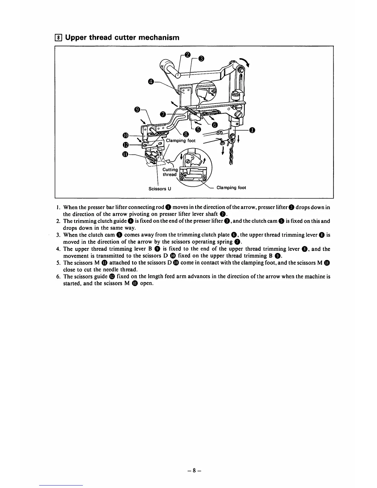 2. The trimming clutch guideO isfixedon the end ofthe presserlifter ^nd the clutch cam0 isfixedon this and