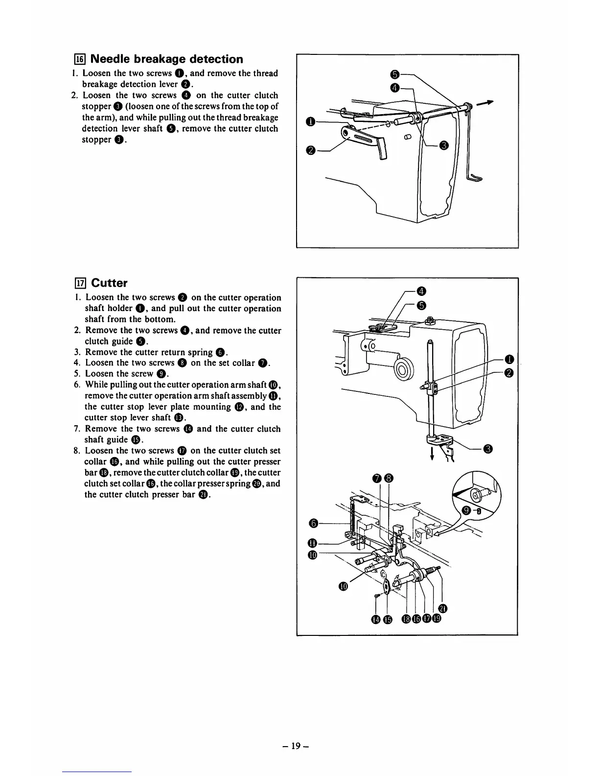 8. Loosen the two screws 0 on the cutter clutch set