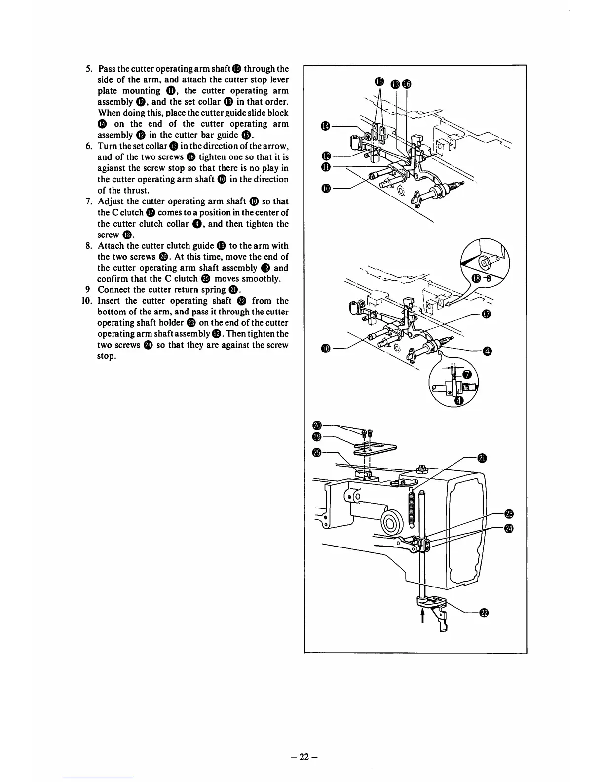 5. Pass thecutter operating arm shaft 0 through the