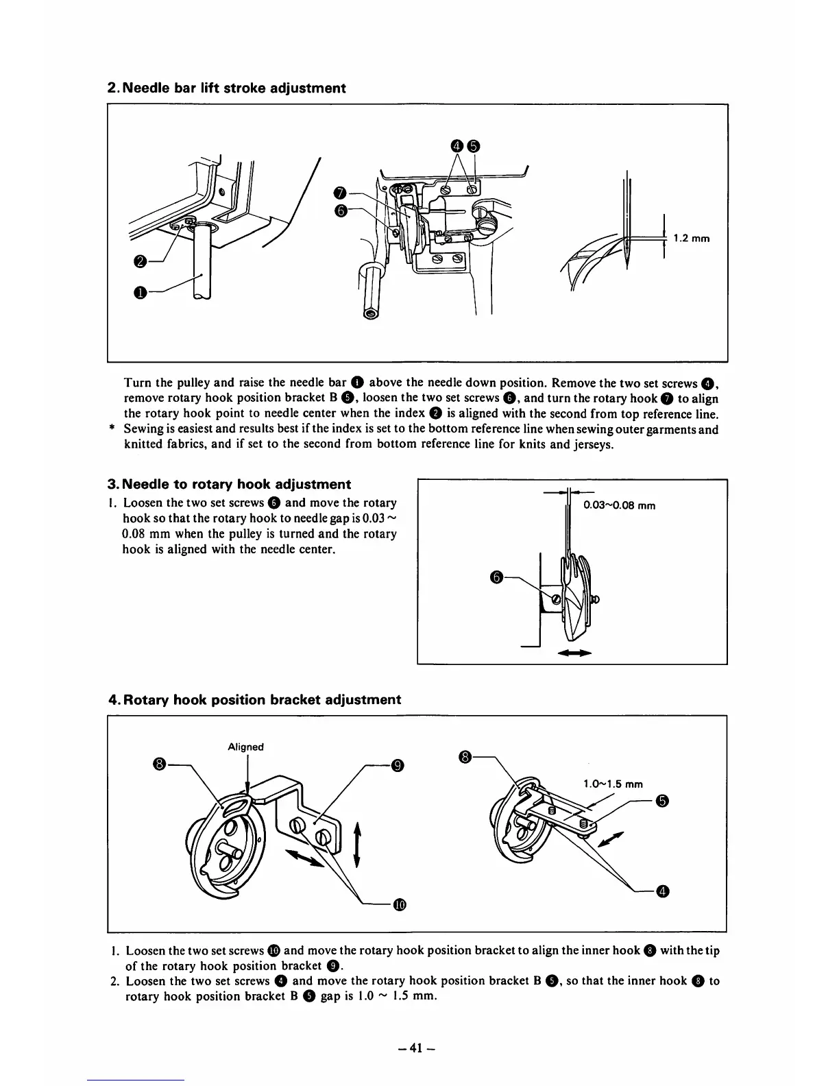 rotary hook position bracket B 0 gap is 1.0 ~