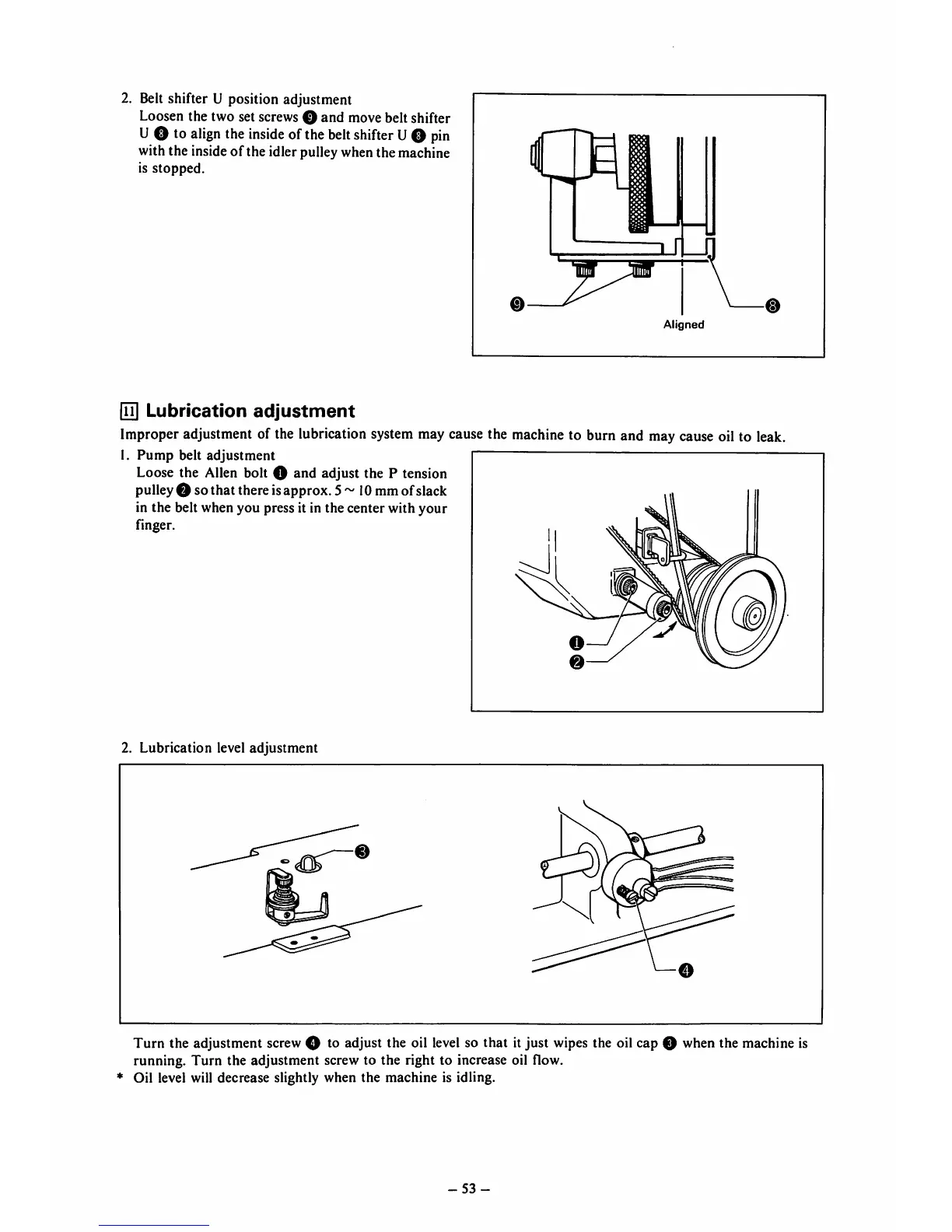 Turn the adjustment screw © to adjust the oil level so that it just wipes the oil cap © when the machine is