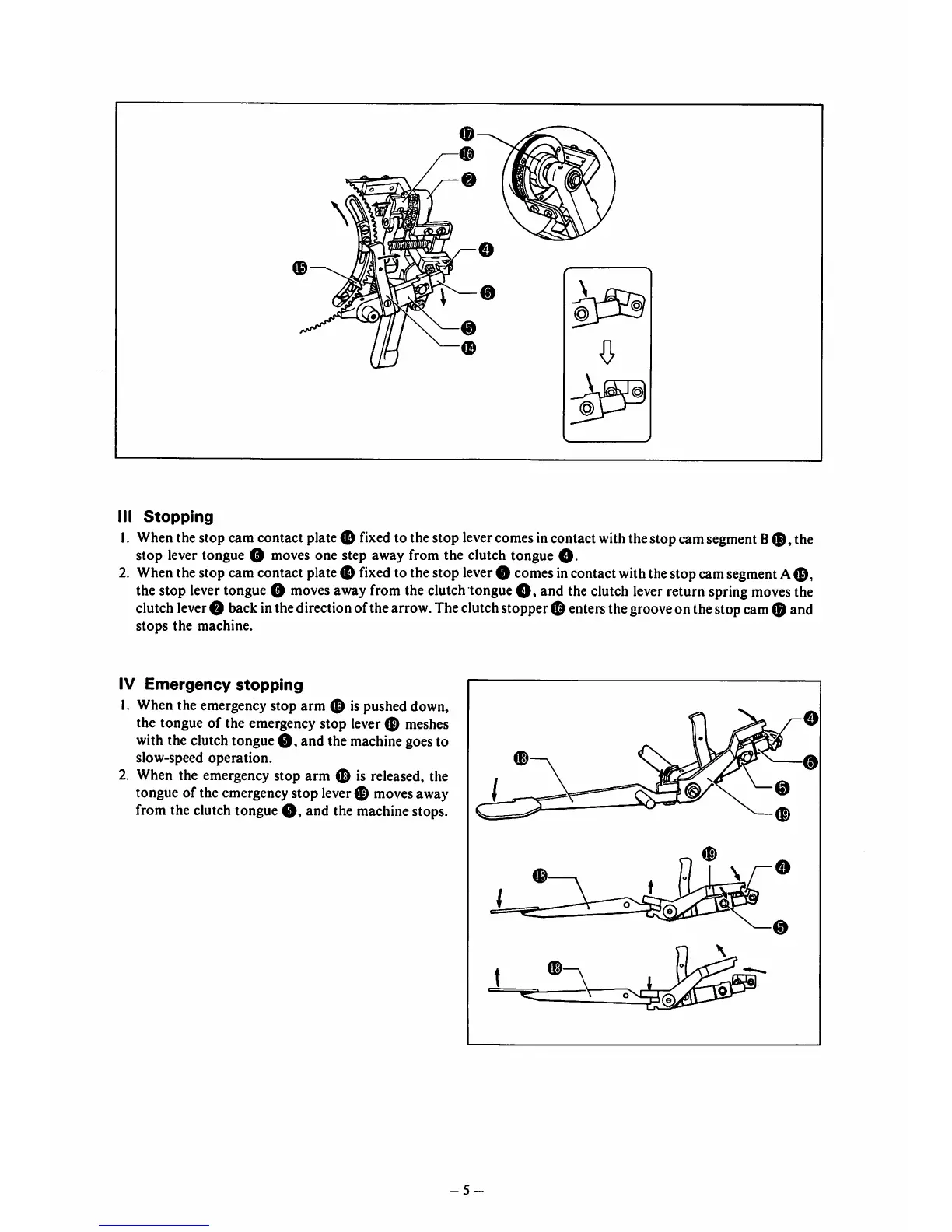 1. When the emergency stop arm 0 is pushed down,