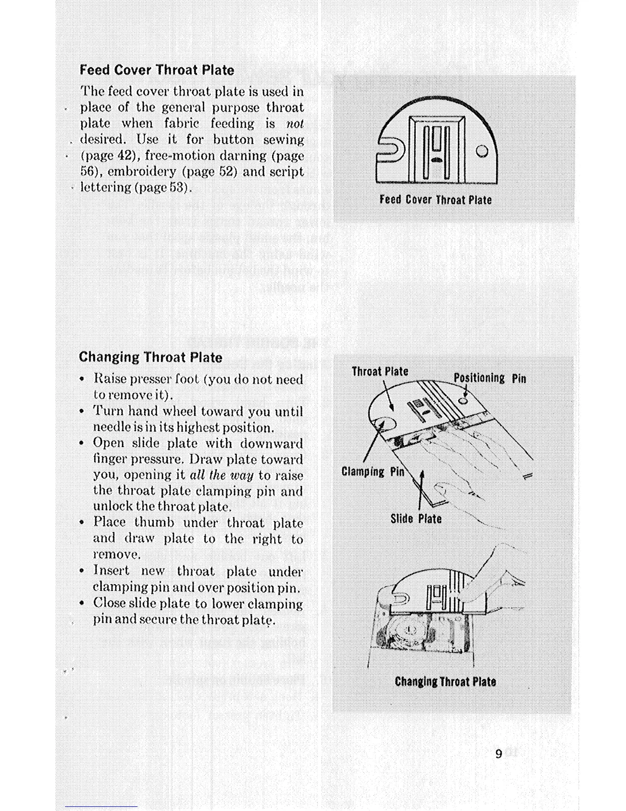 Singer 477 - Feed Cover Throat Plate; Changing Throat Plate
