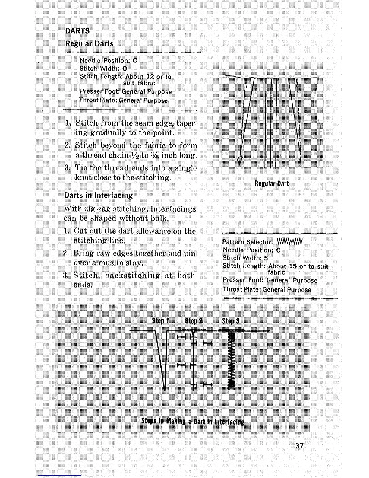 Singer 477 - Regular Darts; Darts in Interfacing; Steps in Making a Dart in Interfacing