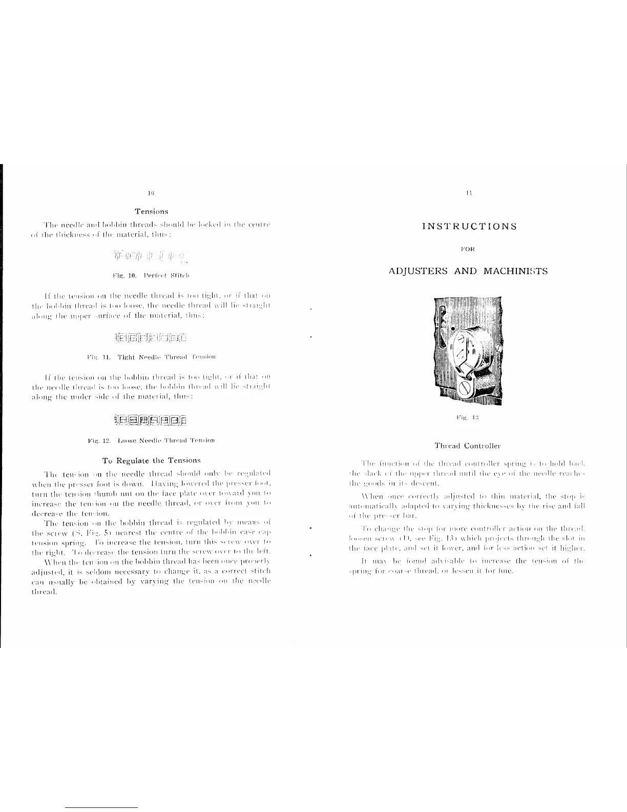 Singer 47W120 - Adjusters and Machinists; Tensions; To Regulate the Tensions; Thread Controller