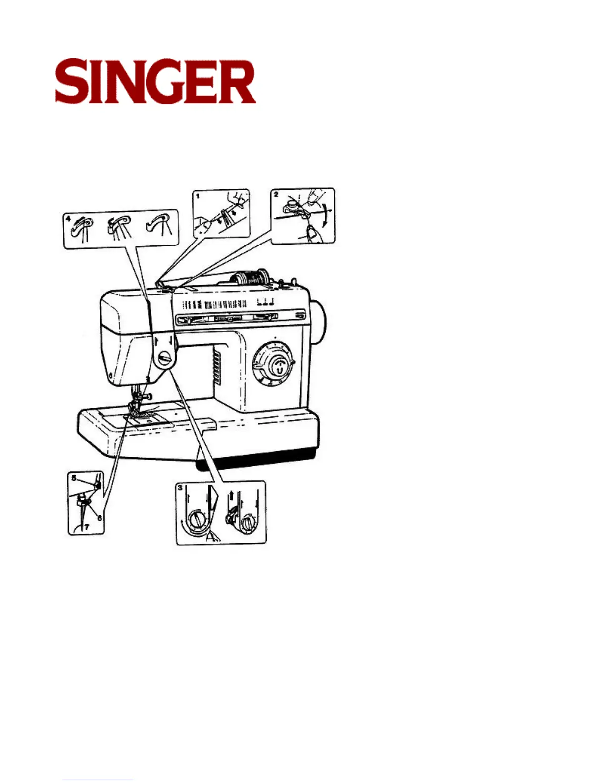 • Pass thread through guides (5) and