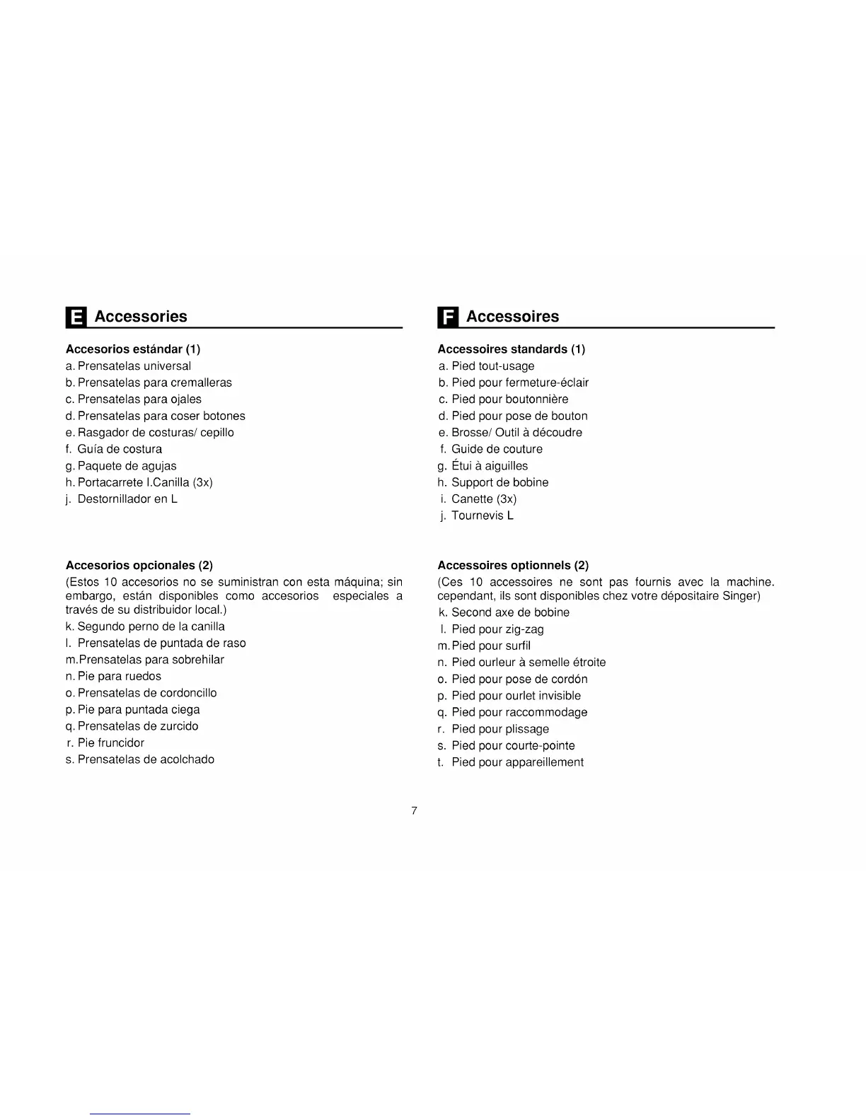 (Estos 10 accesorios no se suministran con esta m_.quina; sin
