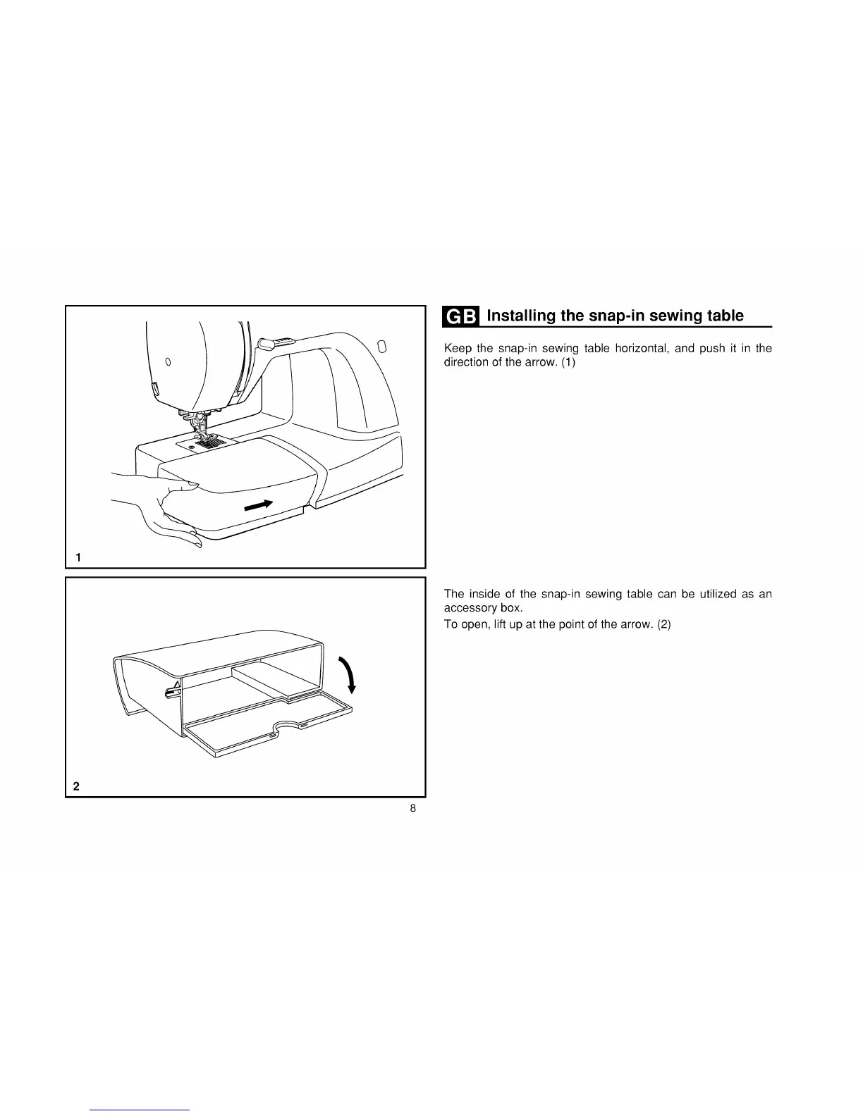 Installing the snap-in sewing table