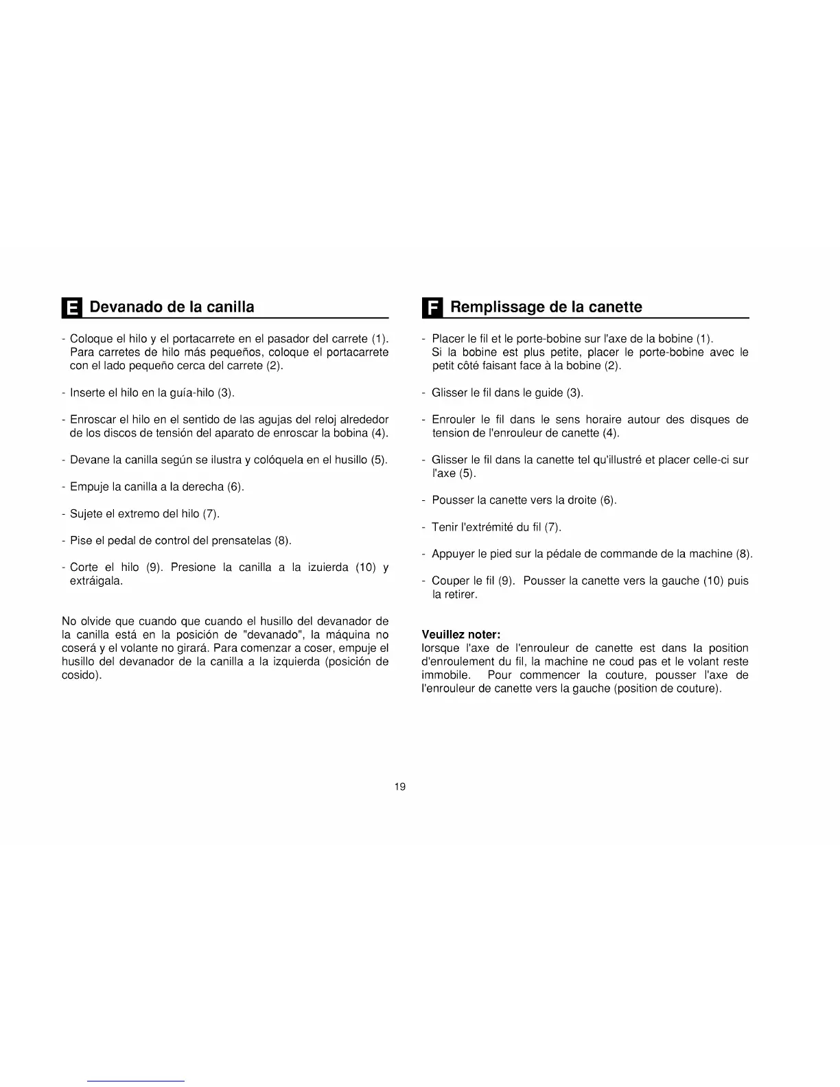Devanado de la canilla Remplissage de la canette