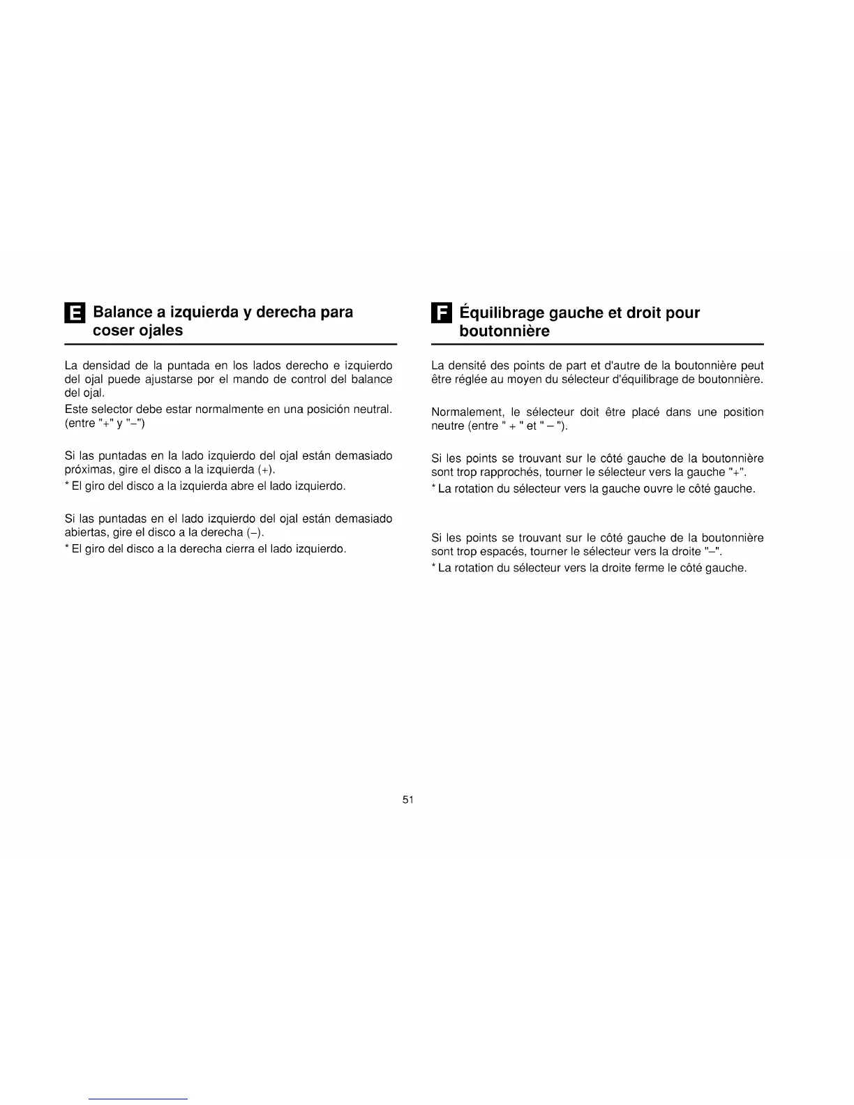 del ojal puede ajustarse por el mando de control del balance