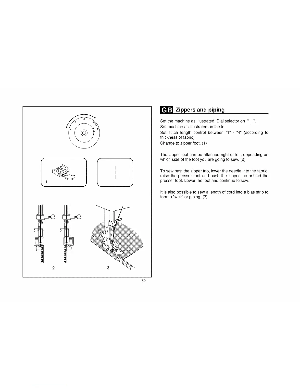 Change to zipper foot. (1)