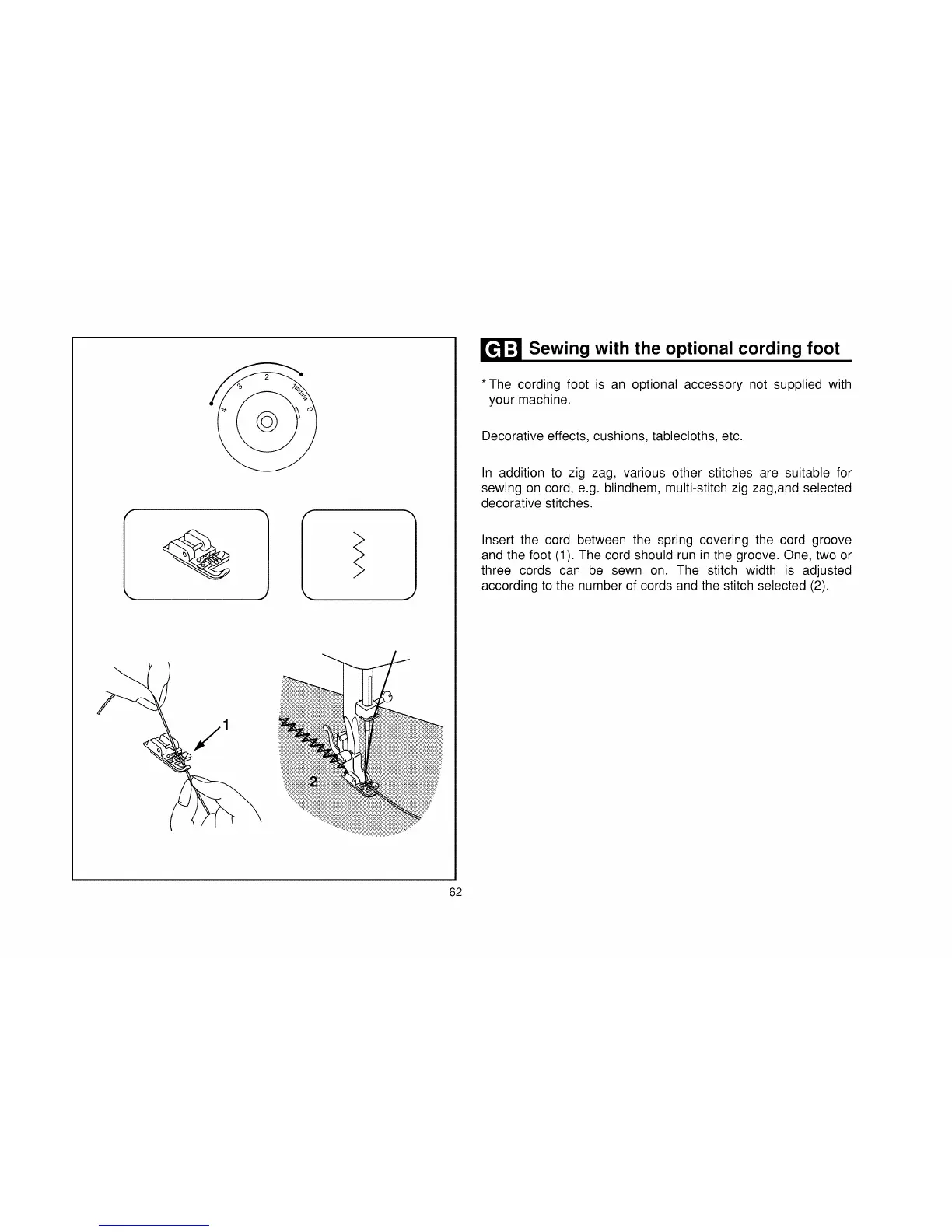 *The cording foot is an optional accessory not supplied with