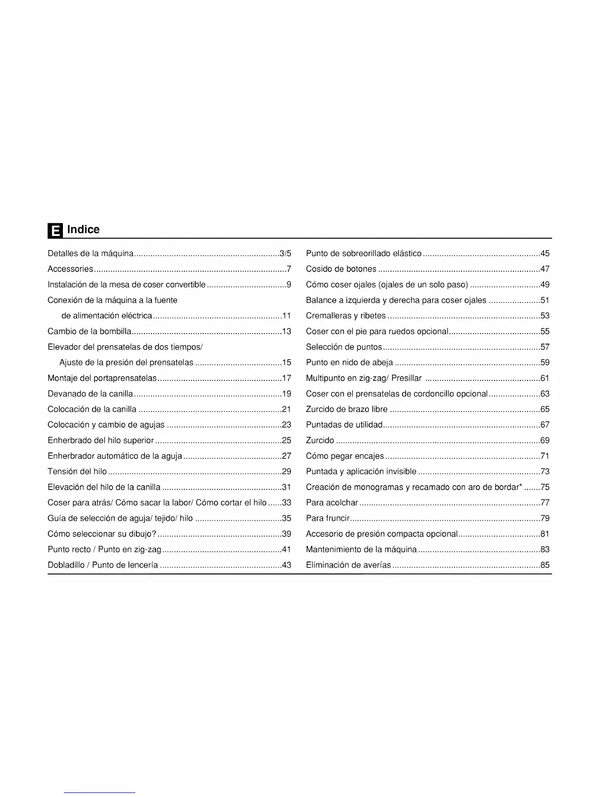 Gu[a de selecci6n de aguja/tejido/hilo ..................................... 35